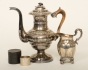 Kaffekanna, gräddkanna, samt servettring. Tot.vikt 1072 gram.