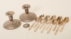 Ljusstakar, skedar, samt mynt, tot. vikt inkl. fyllning i ljusstakar 420 gram, varav ljusstakar 220 gram