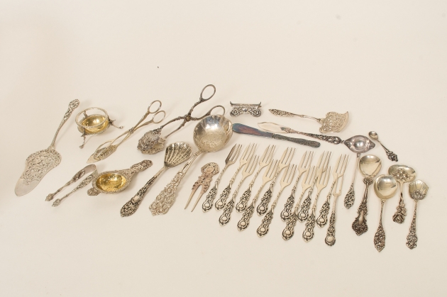 Blandade föremål, mestadels bestick, vikt 600 gram.