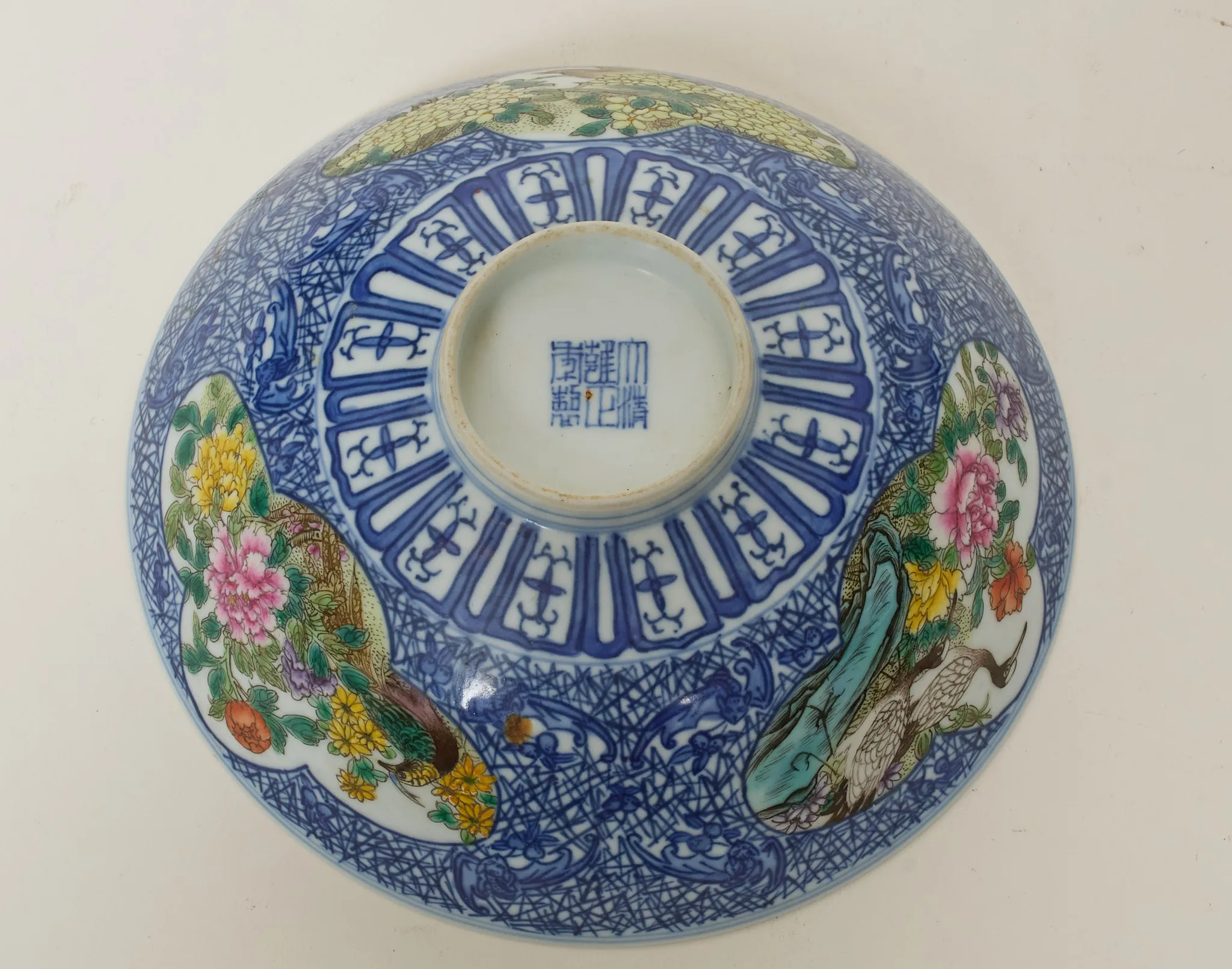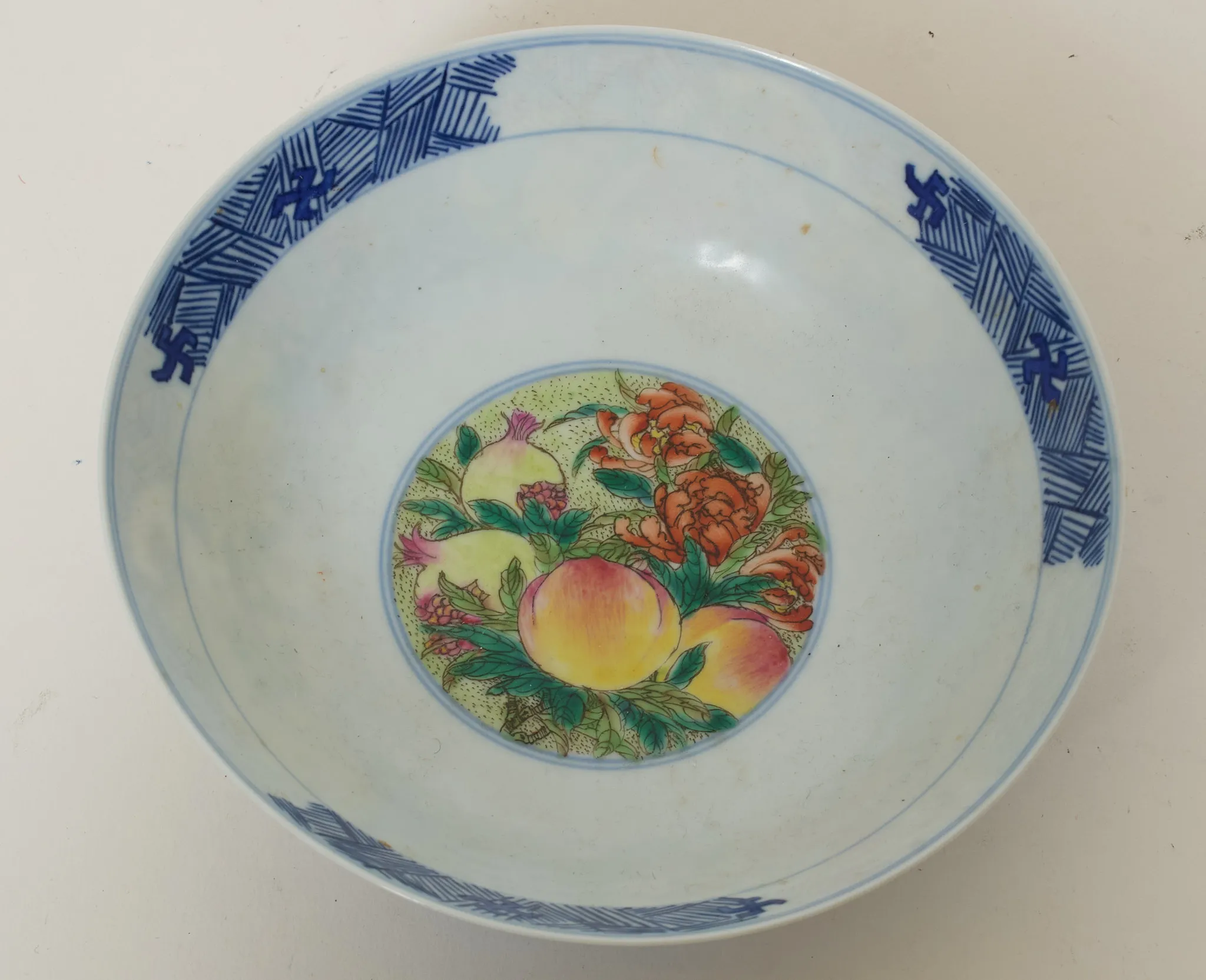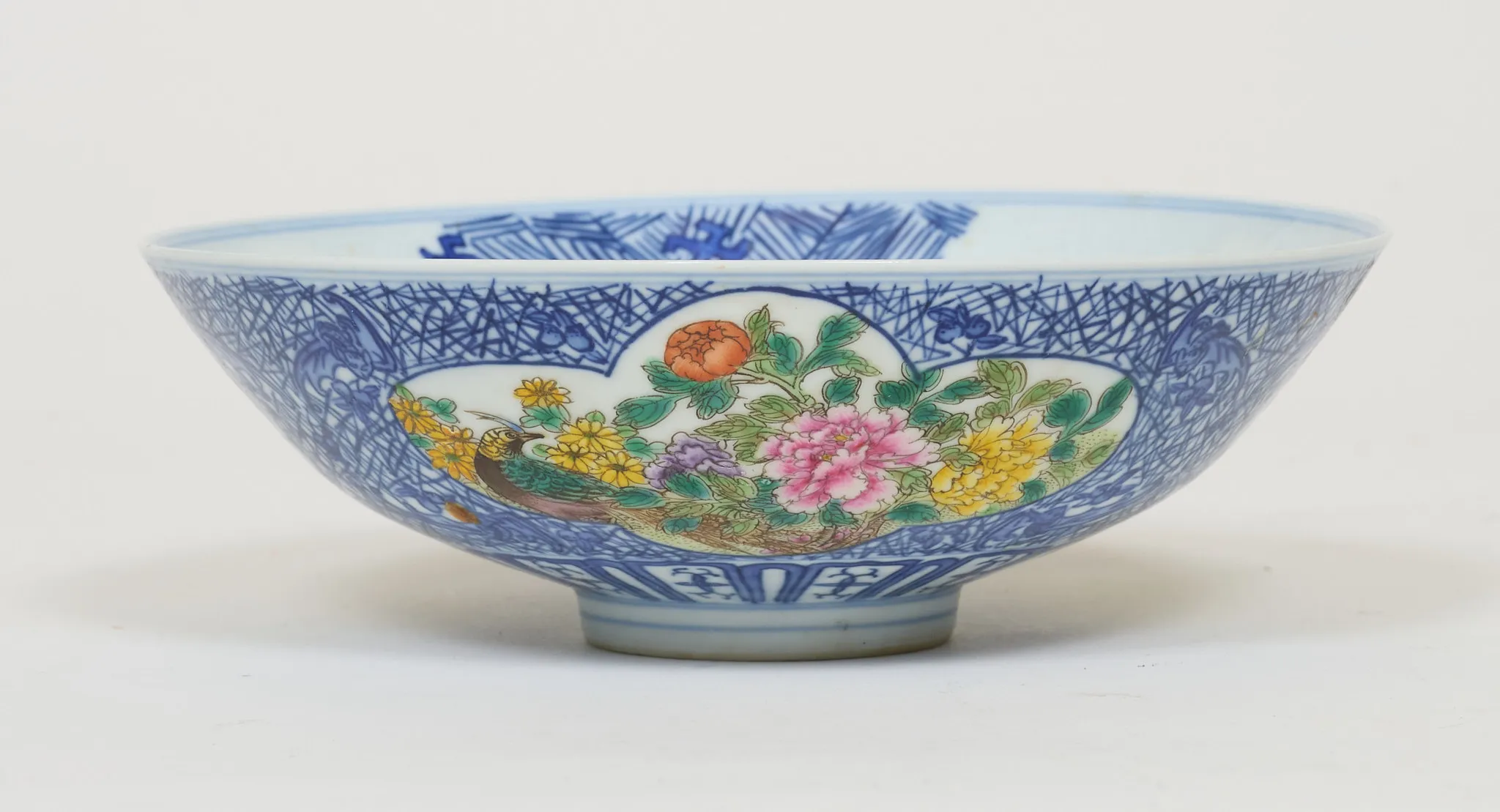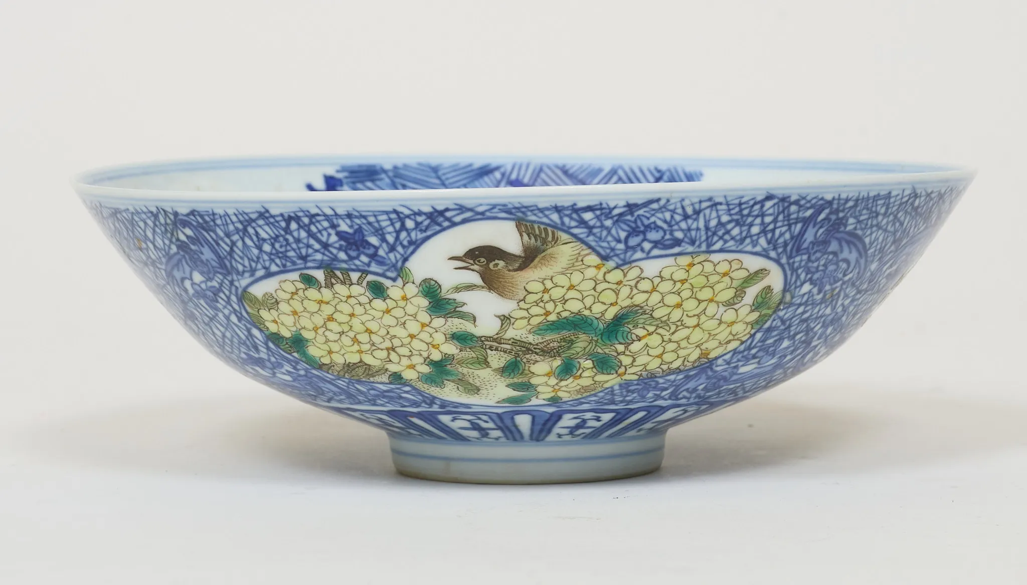Polykrom dekor, med fåglar och växtlighet, höjd 6 cm, bruksslitage.