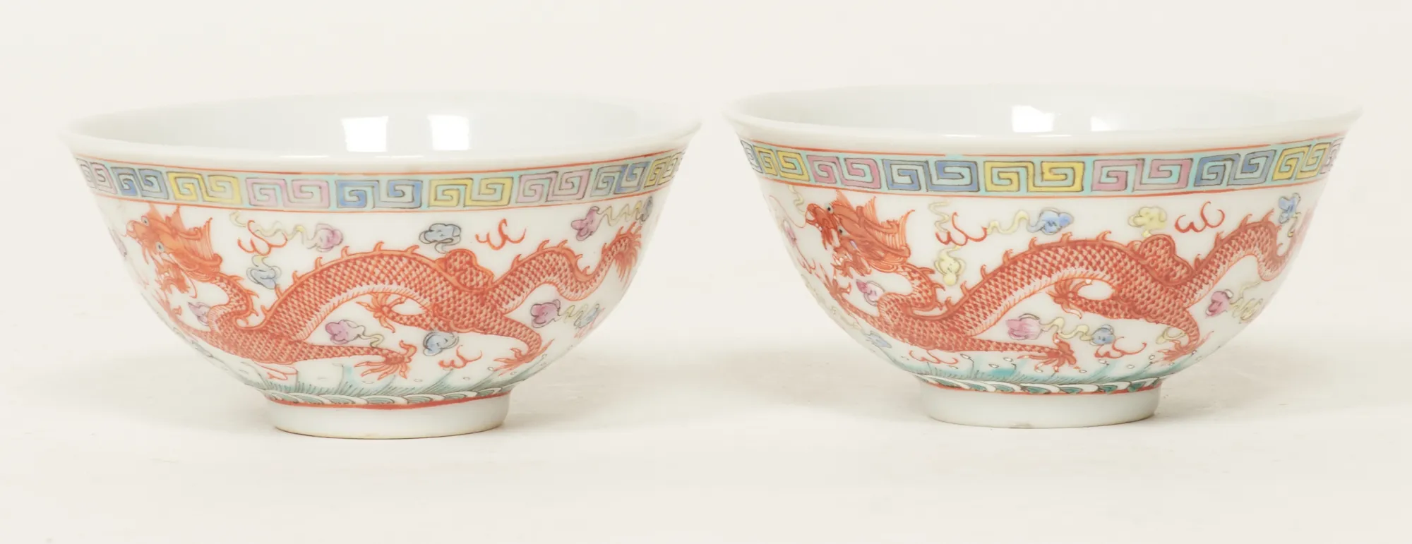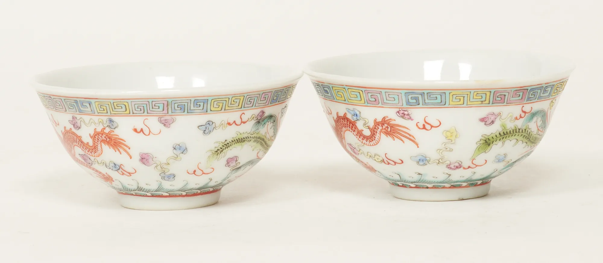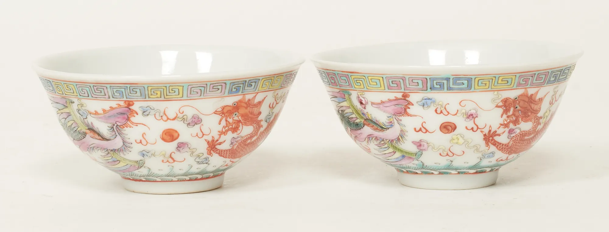 Ett par, dekor i emaljfärger med drakar samt paradisfåglar, diam. 9, höjd 45 cm, bra skick