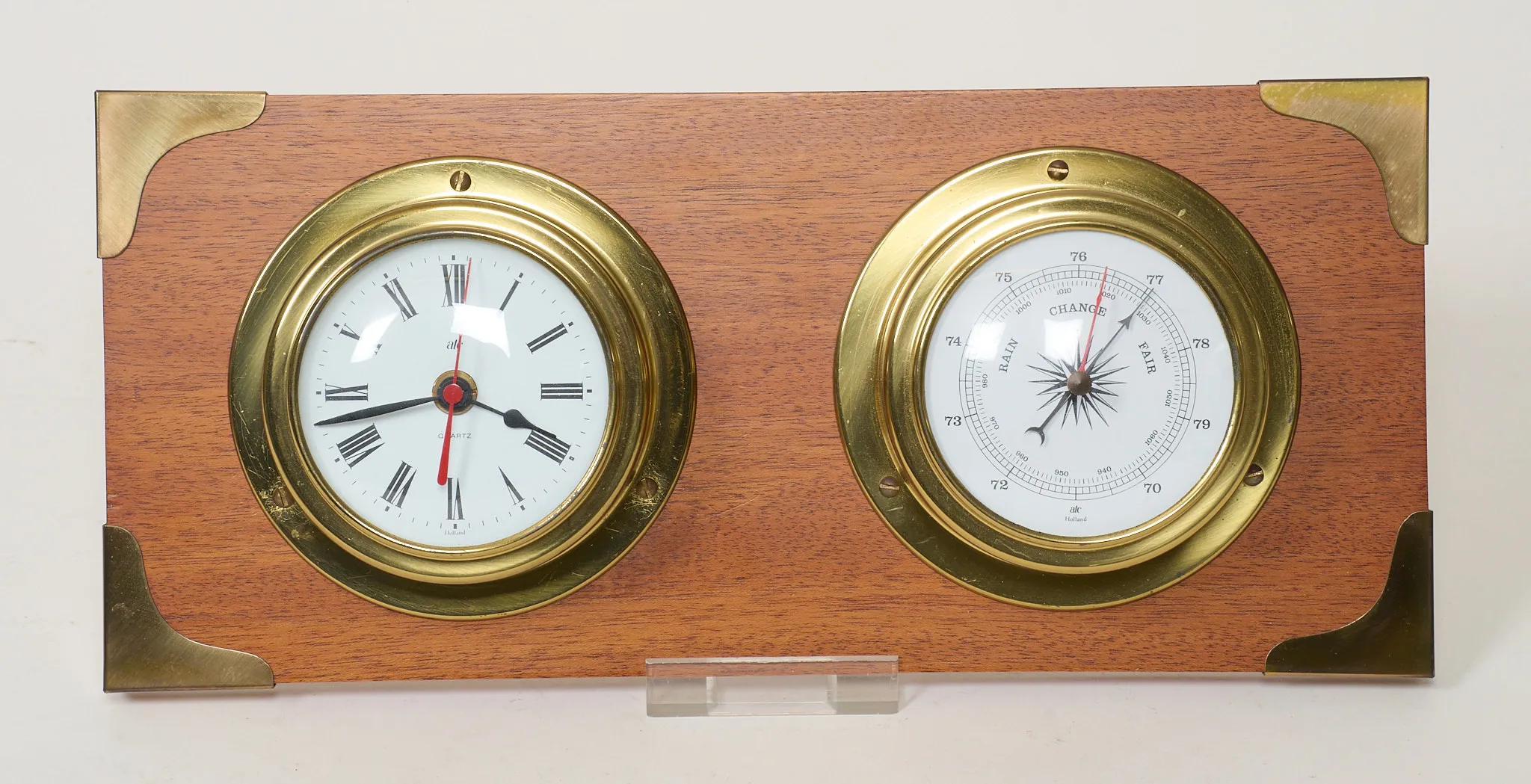 Quartzur, monterade på mahognyplanka, längd 39 cm, fungerar