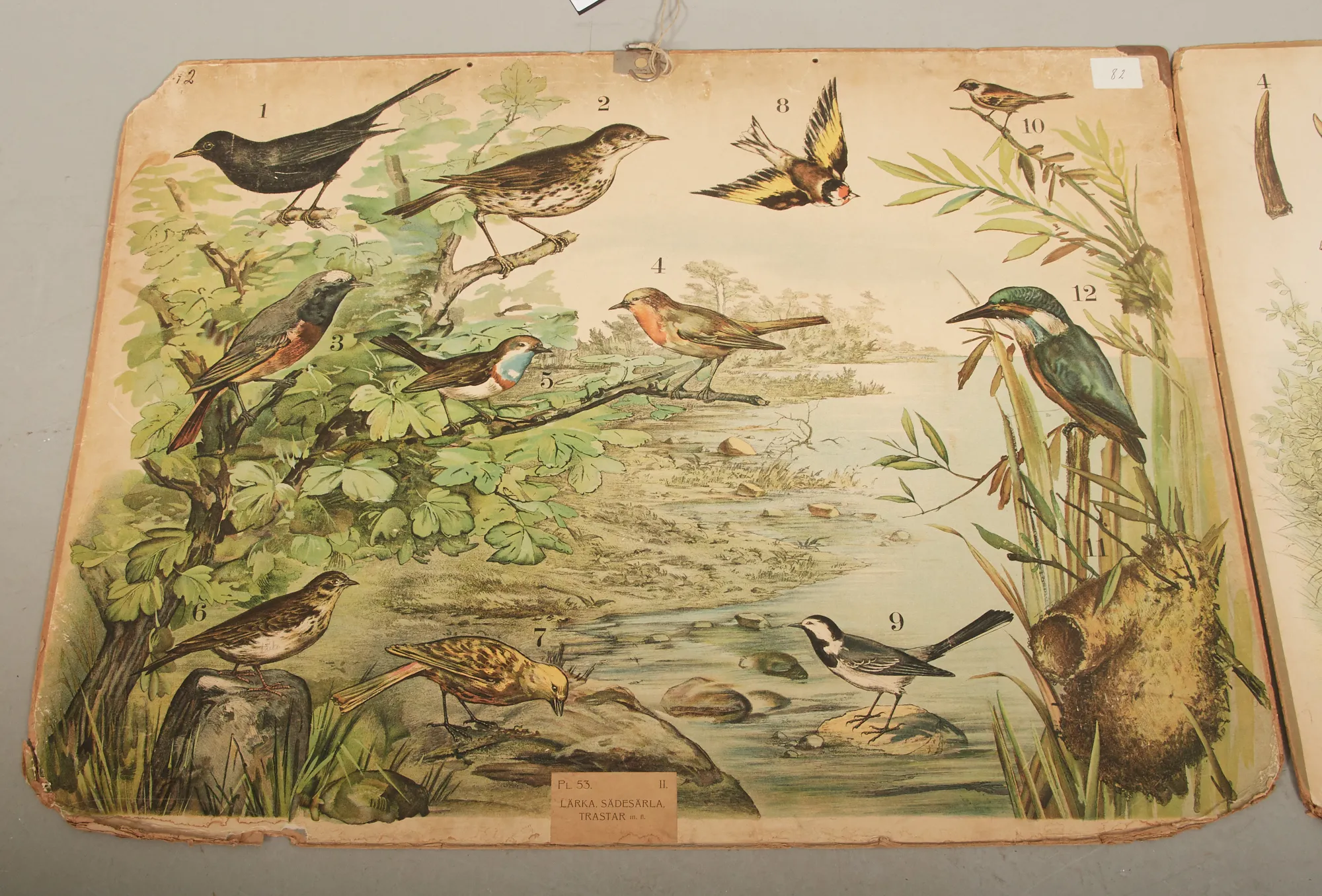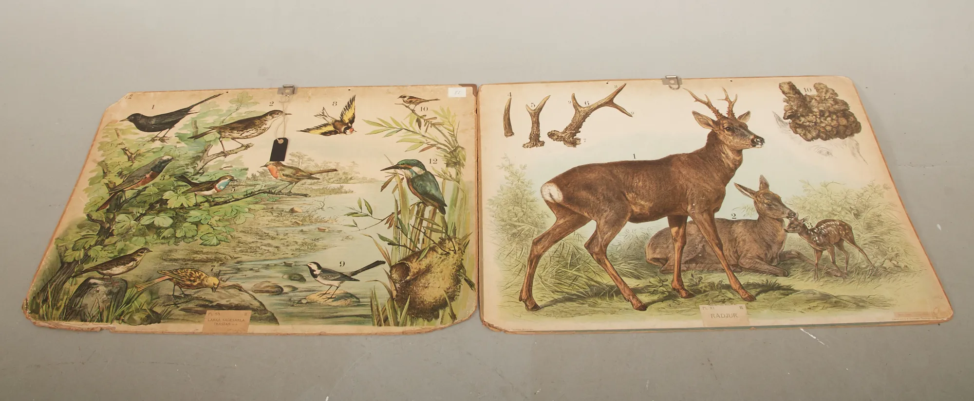 2 st, rådjur, samt fåglar, 82 x 105 cm, bruksslitage, skador förekommer.