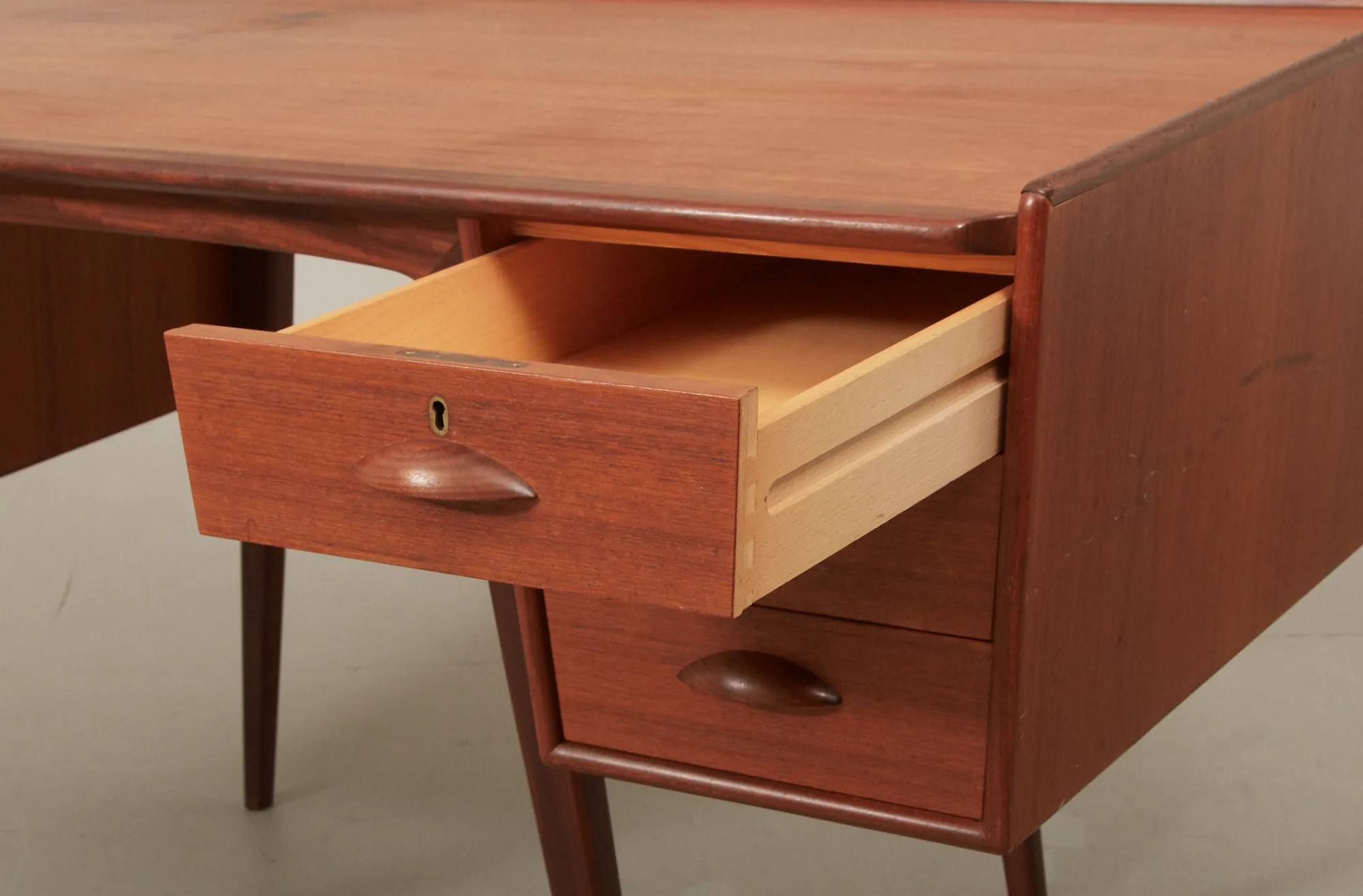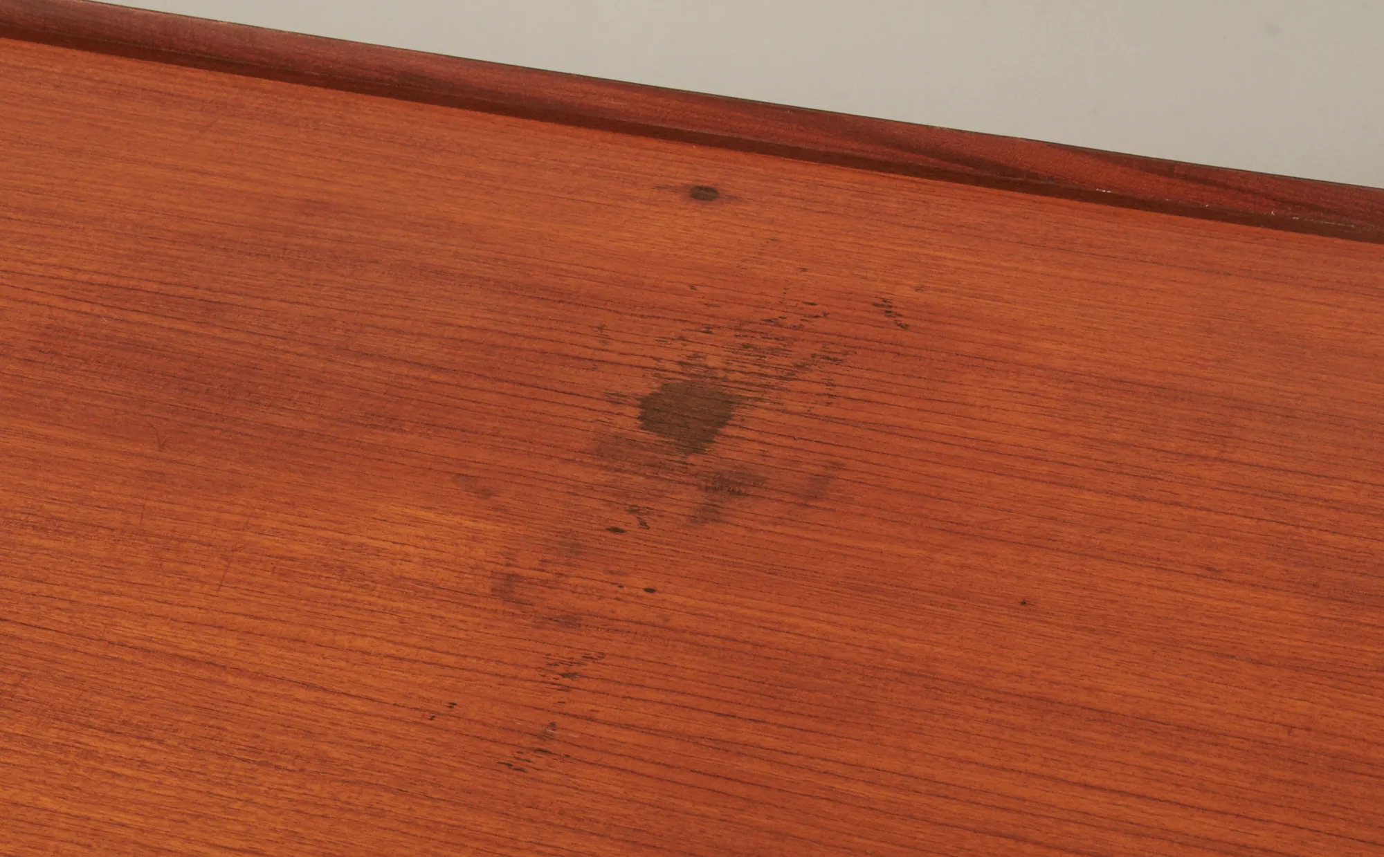 Möbelfabriken Balder, Vaggeryd, teakfaner, 6 utdragslådor, 135 x 70 cm, höjd 75 cm, bruksslitage, fläckar förekommer, samt mindre fanérskada.