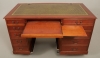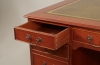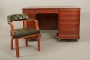 Idegran, med detaljer i läder, skrivbord med 11 utdragslådor, samt utfällbar skiva, 142 x 76 cm, höjd 77 cm, skrivbordsstol medföljer.Smärre bruksslitage, men mindre skavmärken förekommer.