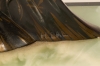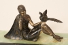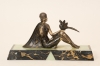 Bemålad gjutmetall på sten/onyx sockel 35 x11 cm, höjd 20 cm. Mindre avslag på sockelns baksida. Signerad H Bal.