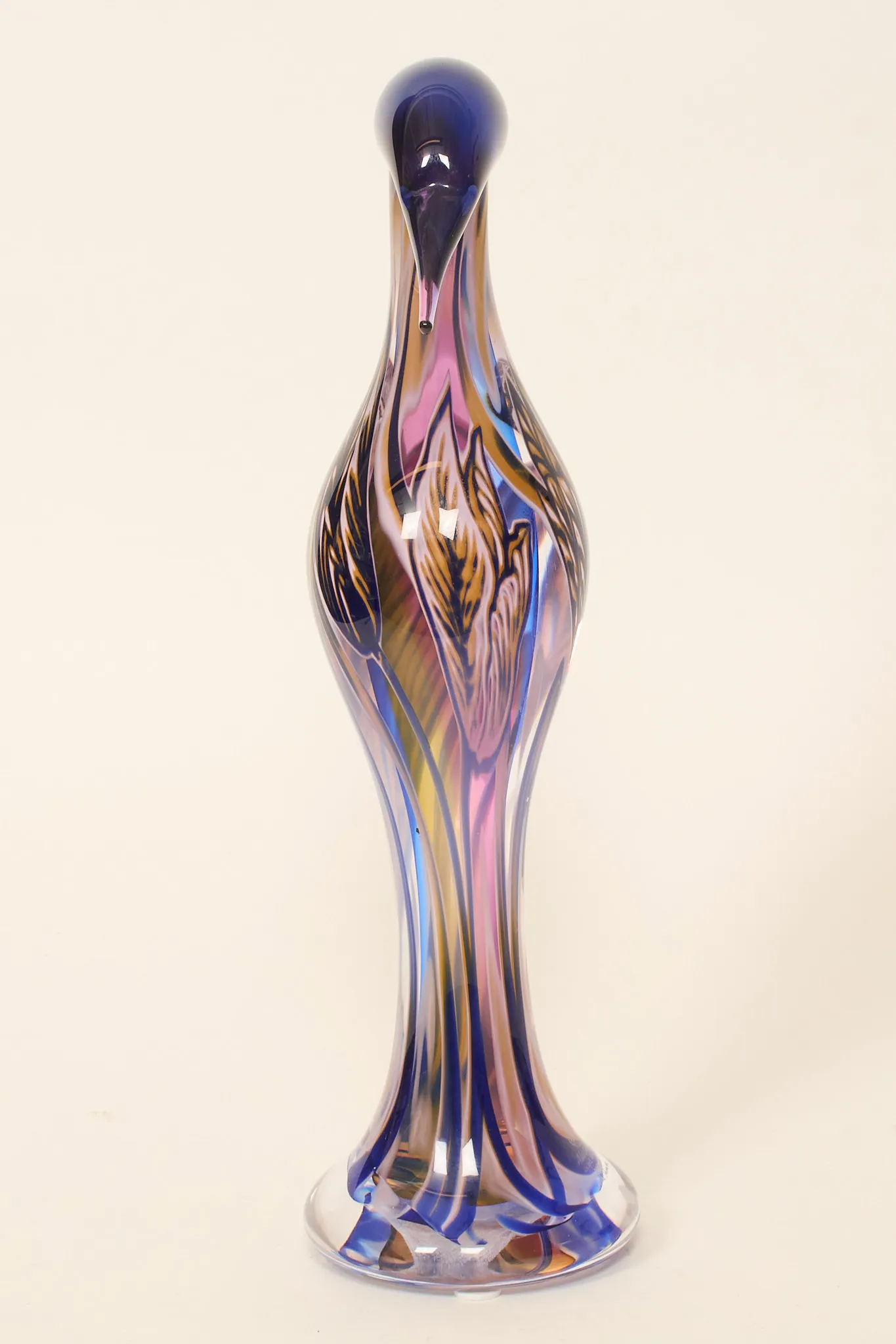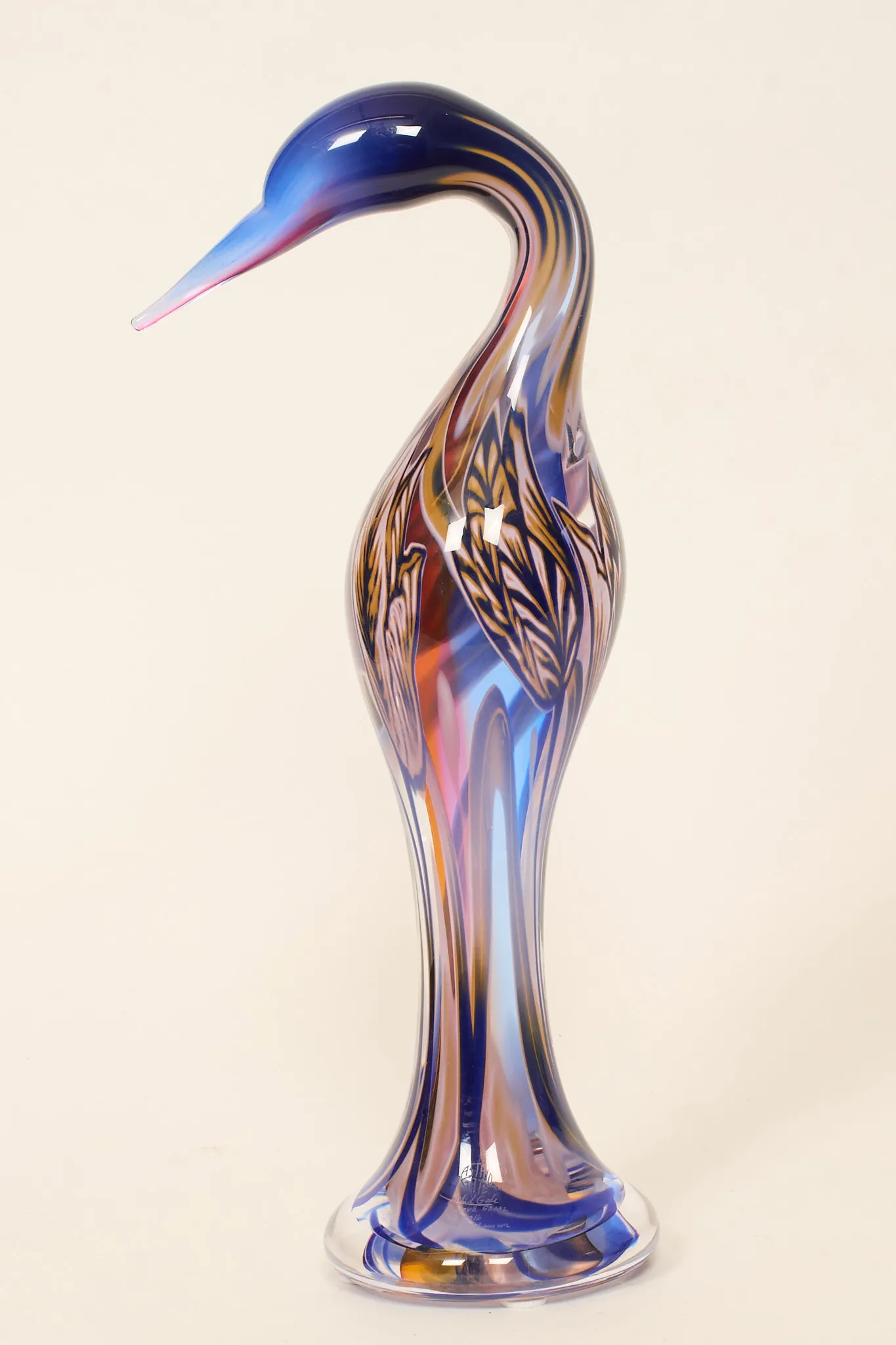 I form av fågel, polykrom glasmassa, signerad i gods: "Astrid Gate, unique graal, 2016, Micke Johansson", höjd 45 cm, fint skick.