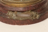 Bronserad metall, höjd ca 50 cm. Märkt Libellule Par Ruchol. Träsockel maskstungen, åldersrelaterat slitage.
