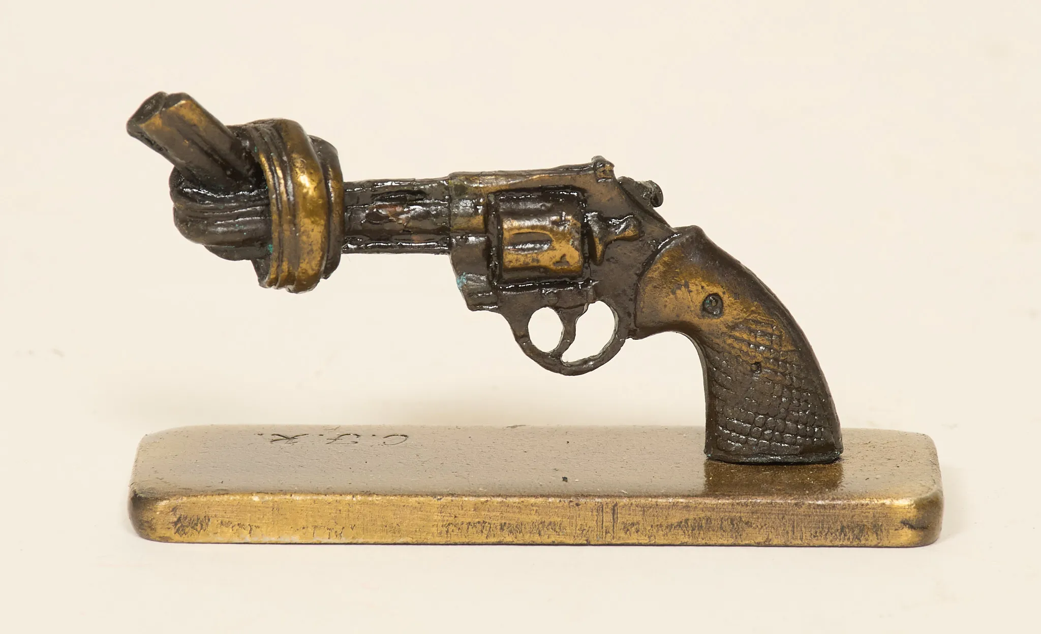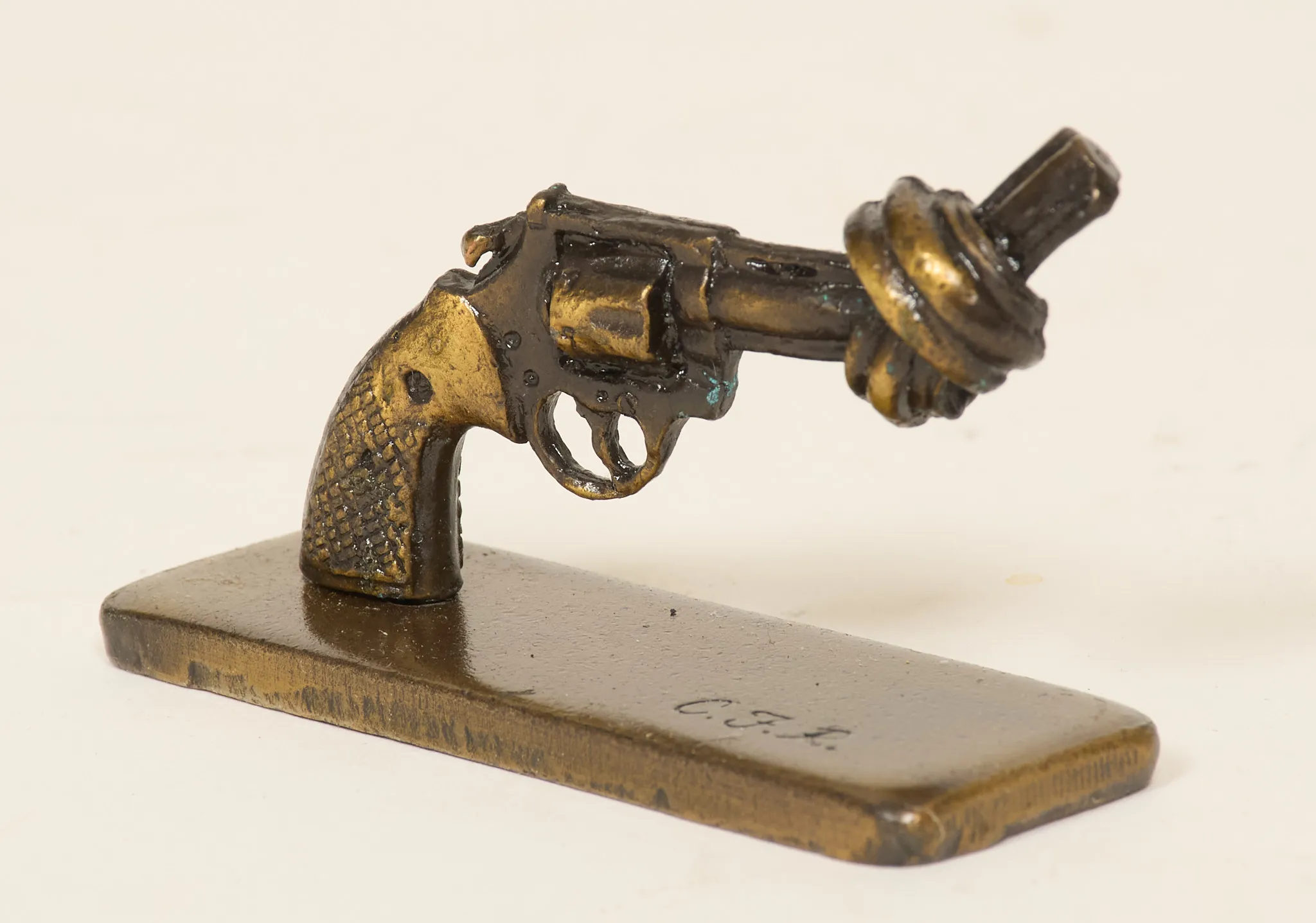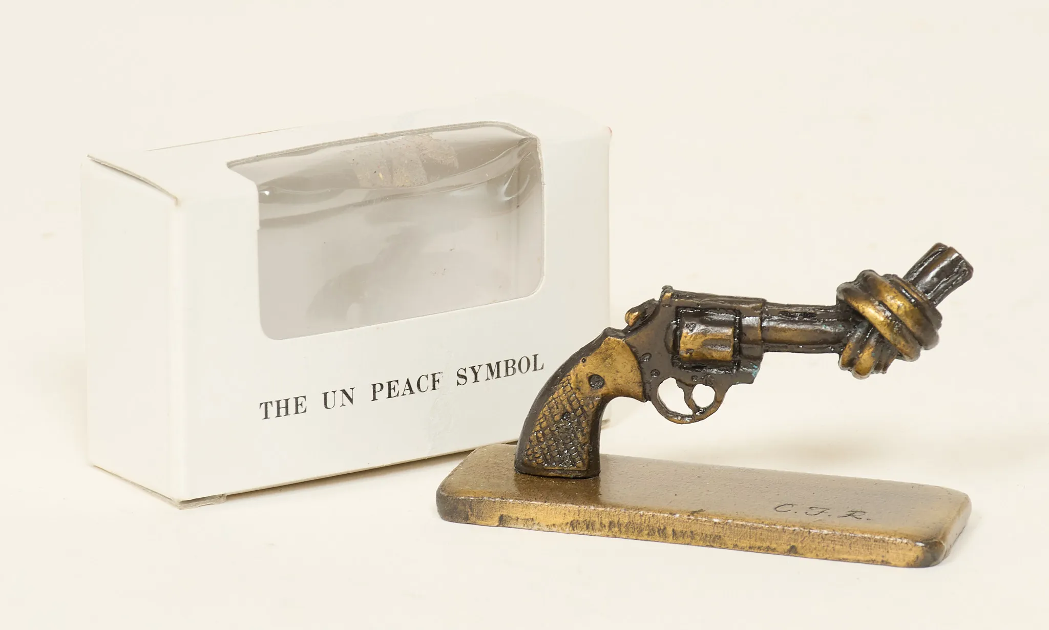 Brons, Fredssymbol för FN. Monogramsignerad. Längd 7,5 cm, höjd 4,5 cm. I originalkartong.