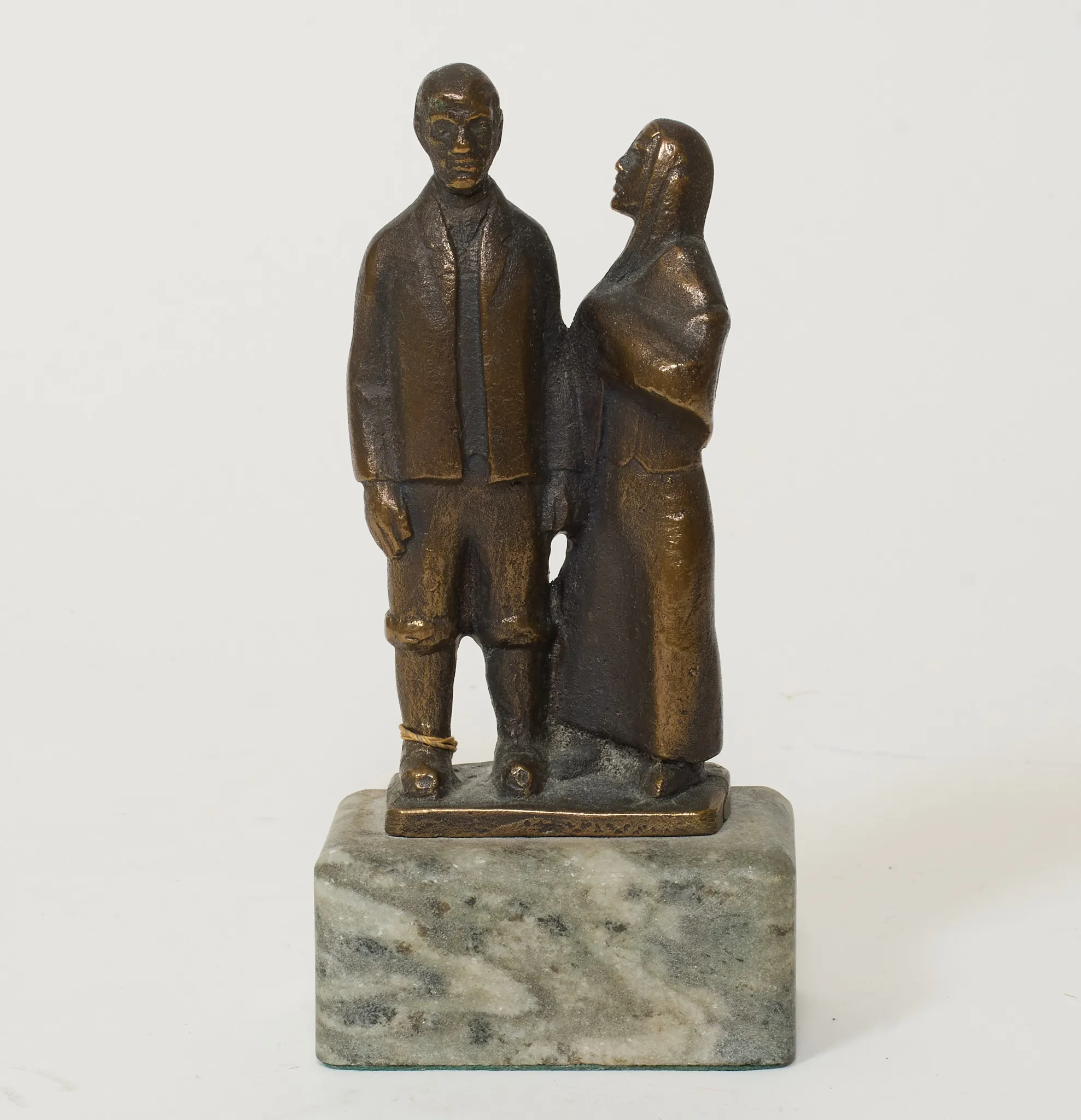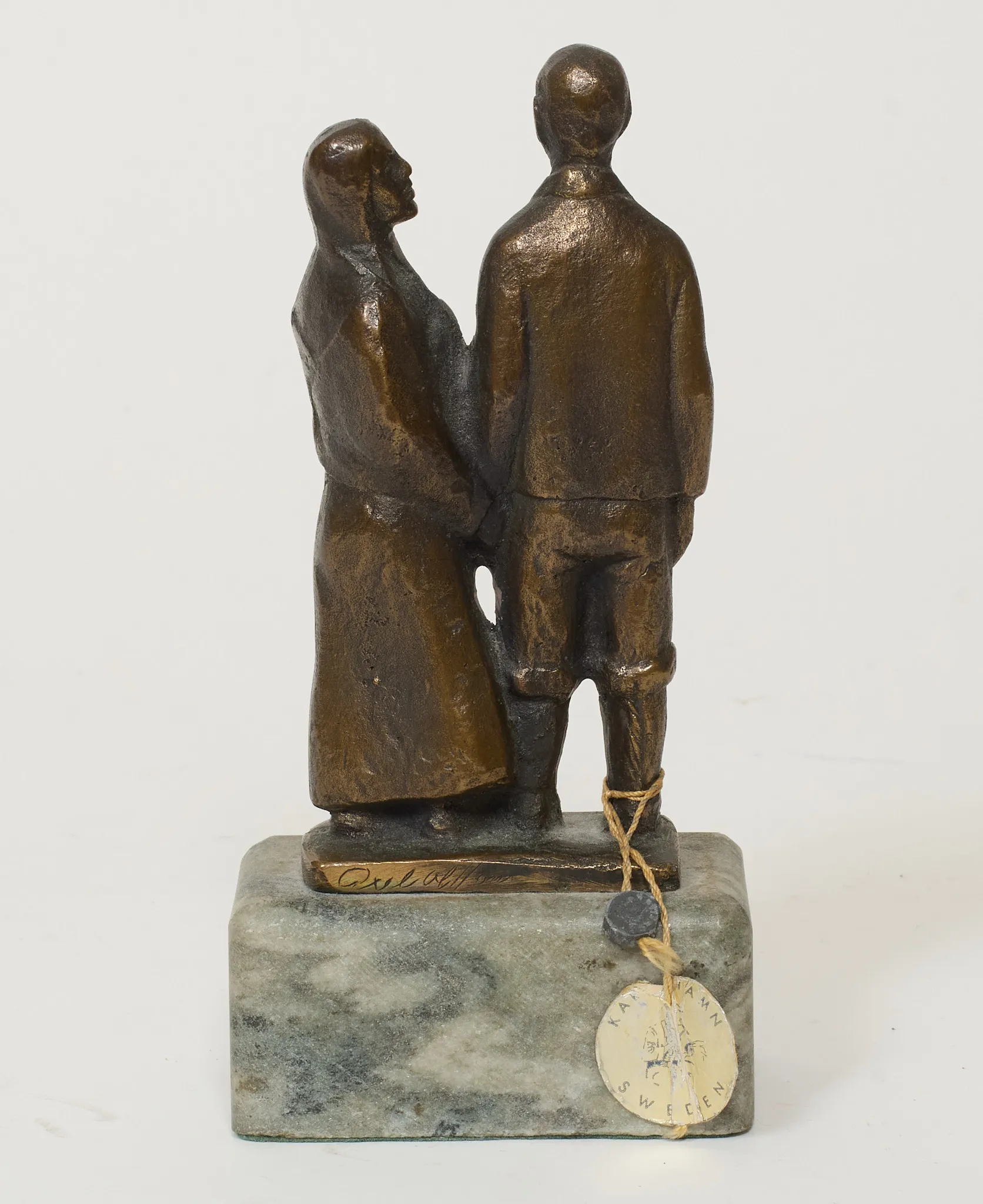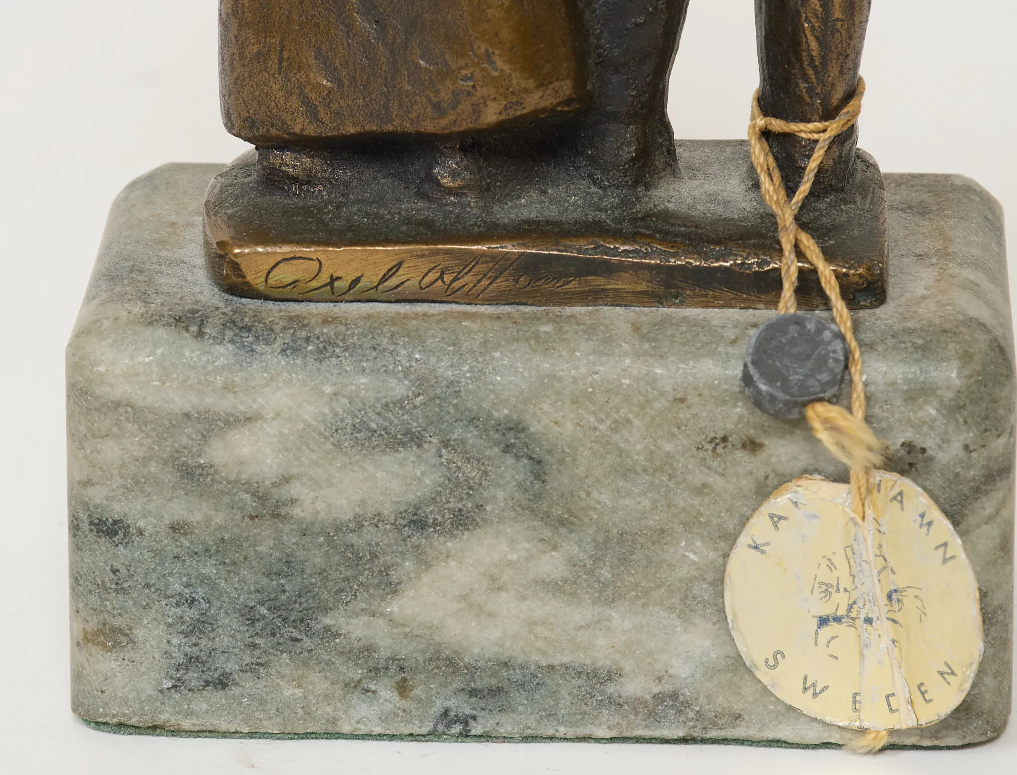 Brons, monterad på stensockel, signerad, höjd inkl sockel 17 cm, smärre slitage.