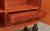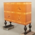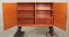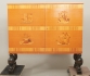 1940-tal, 135 x 42,5, höjd 130 cm. Ett dörrpar med bakomliggande förvaring, 4 hyllplan samt 3 utdragslådor. Bruksslitage, skiva med fläckar.