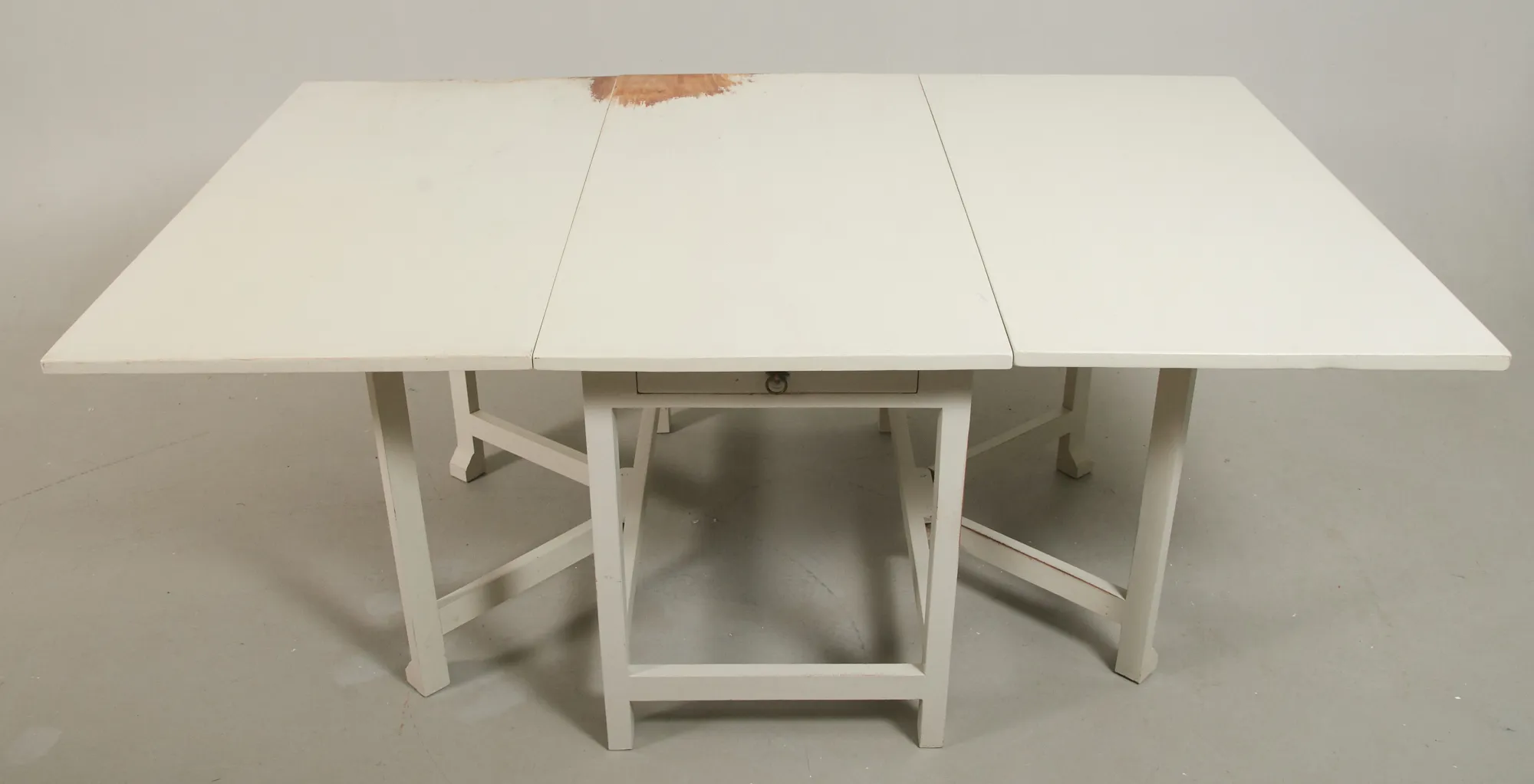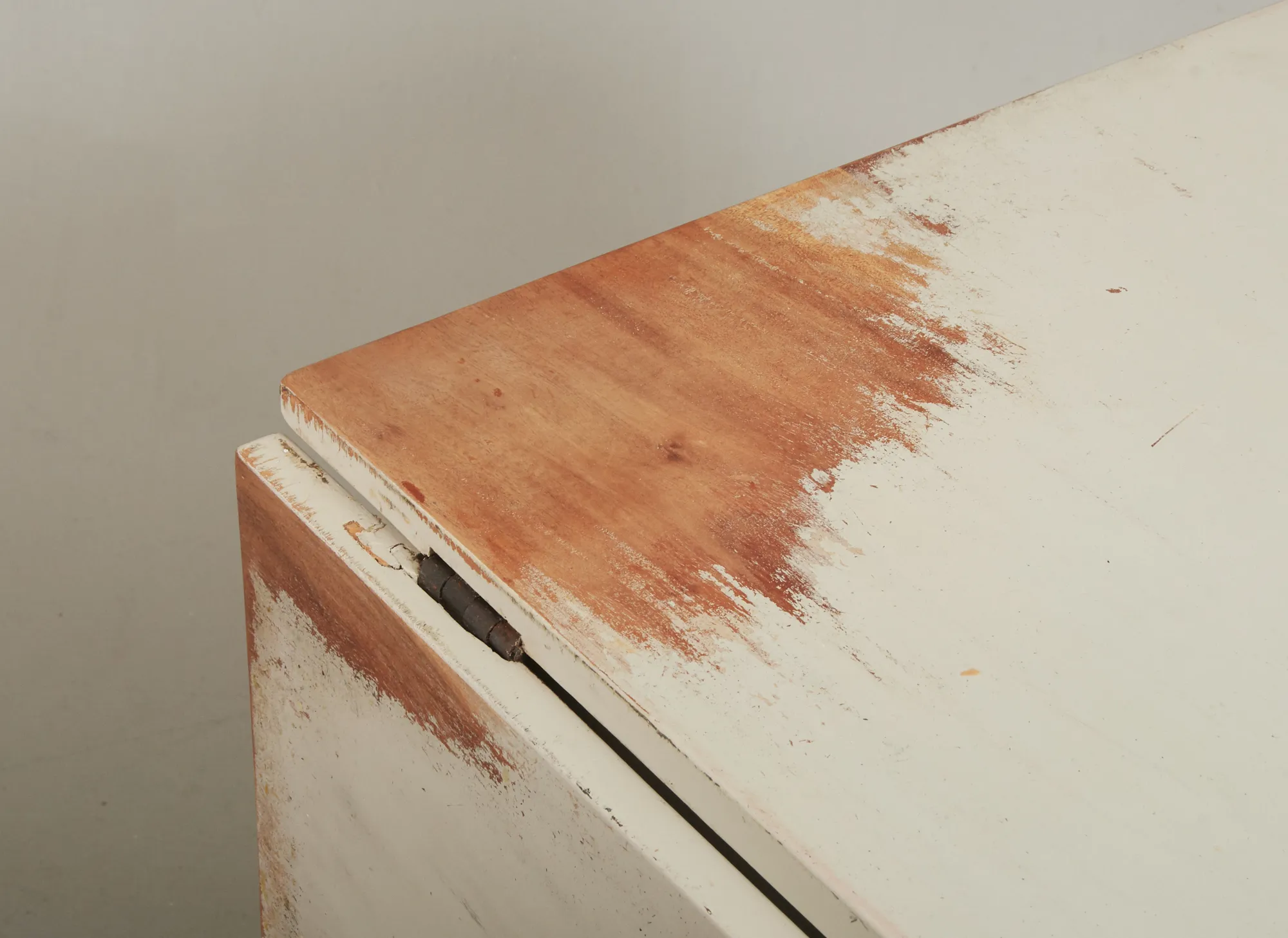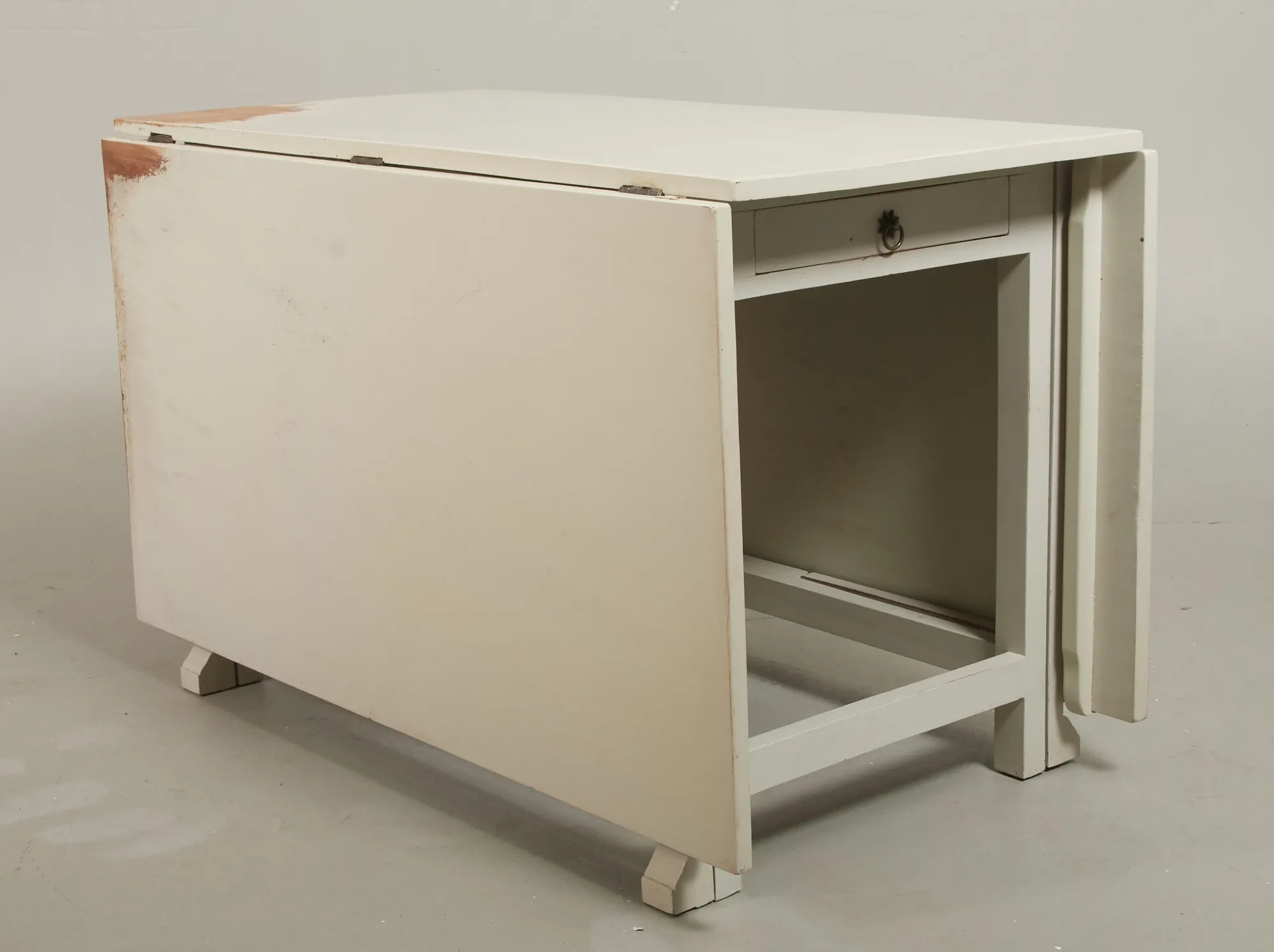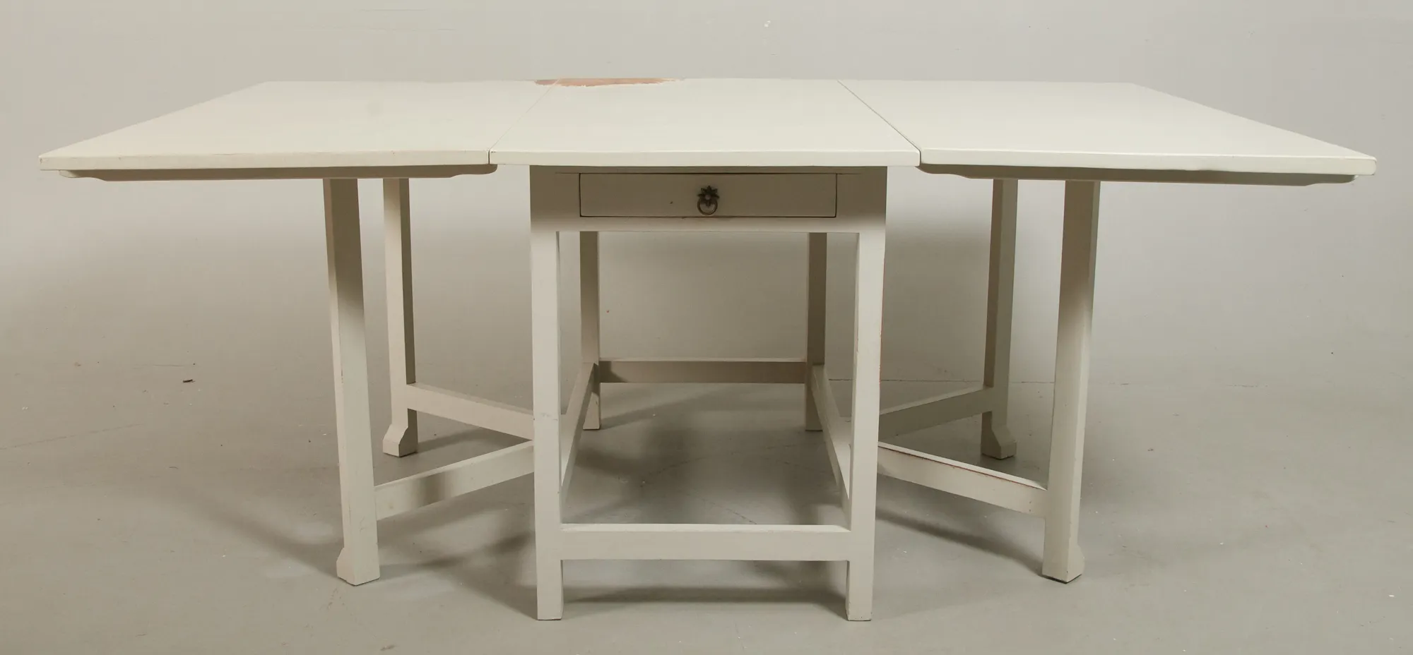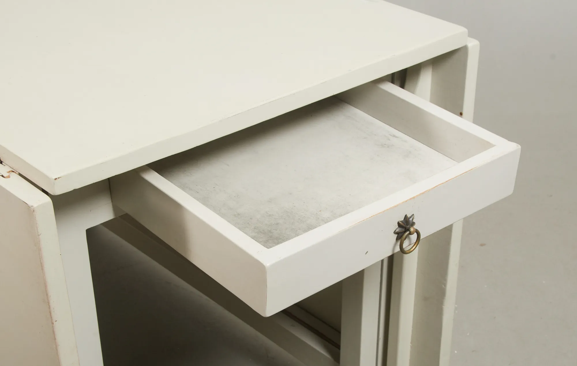 Bemålat trä, utdragslådor i varje sarg, dubbla grindar, 120 x 65, höjd 76 cm, 2 slag 'a 65 cm, smärre slitage, senare bemålning, färgskav förekommer.