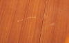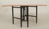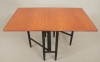 Teakfanerad skiva, bemålat underrede. 85 x 25/135 cm, höjd ca 73 cm. Bruksslitage, fläckar samt repor.
