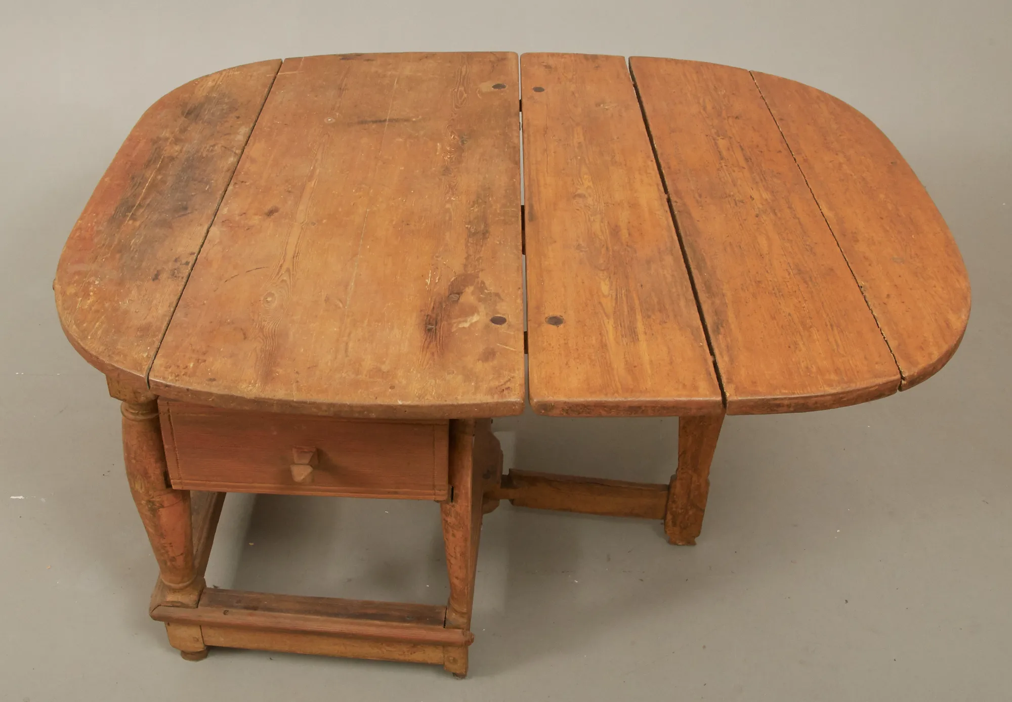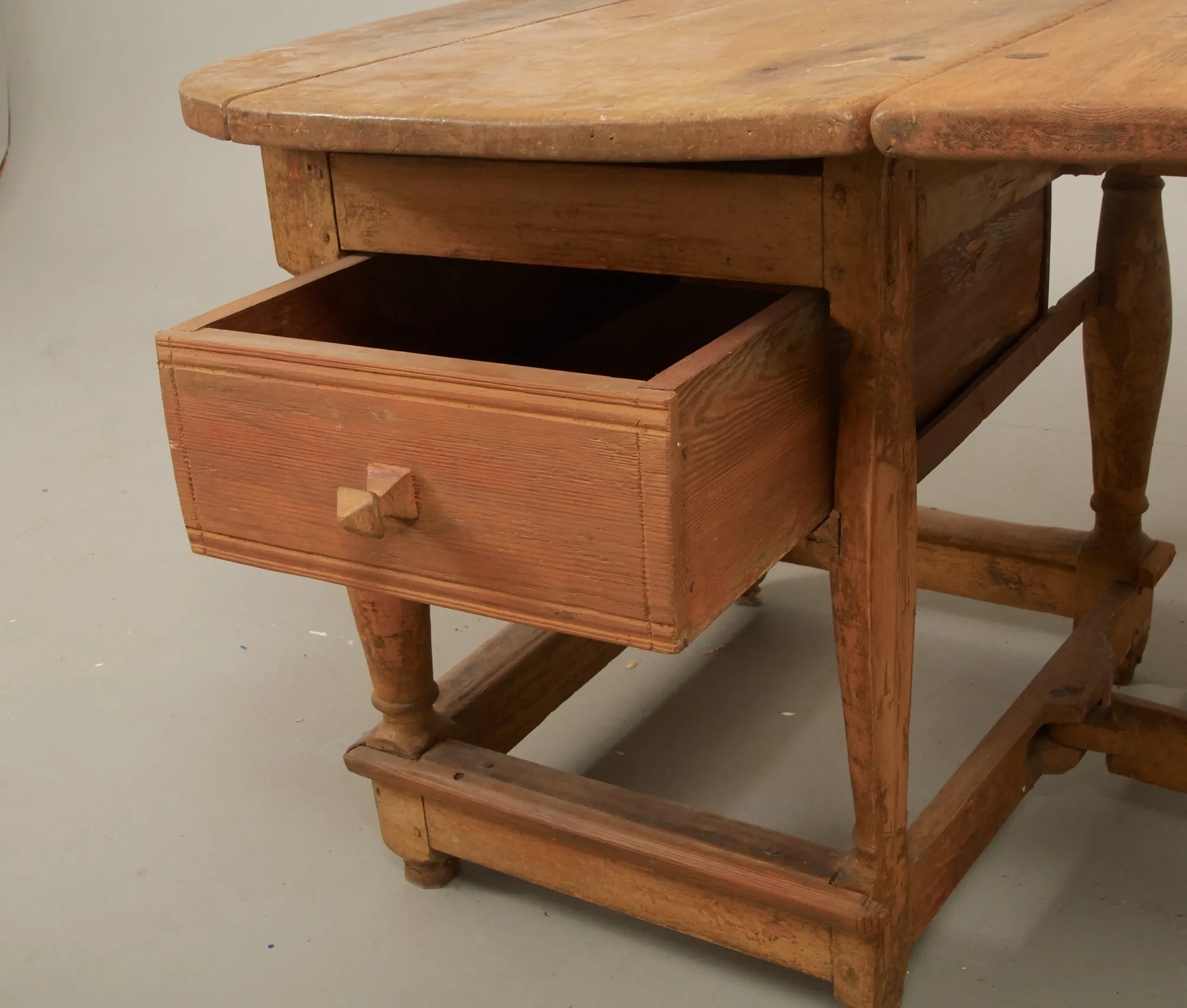 1800-tal, furu, utdragslåda i sarg, 100 x 64 cm, höjd 70 cm, ett slag 'a 59 cm, bruksslitage, torrsprickor