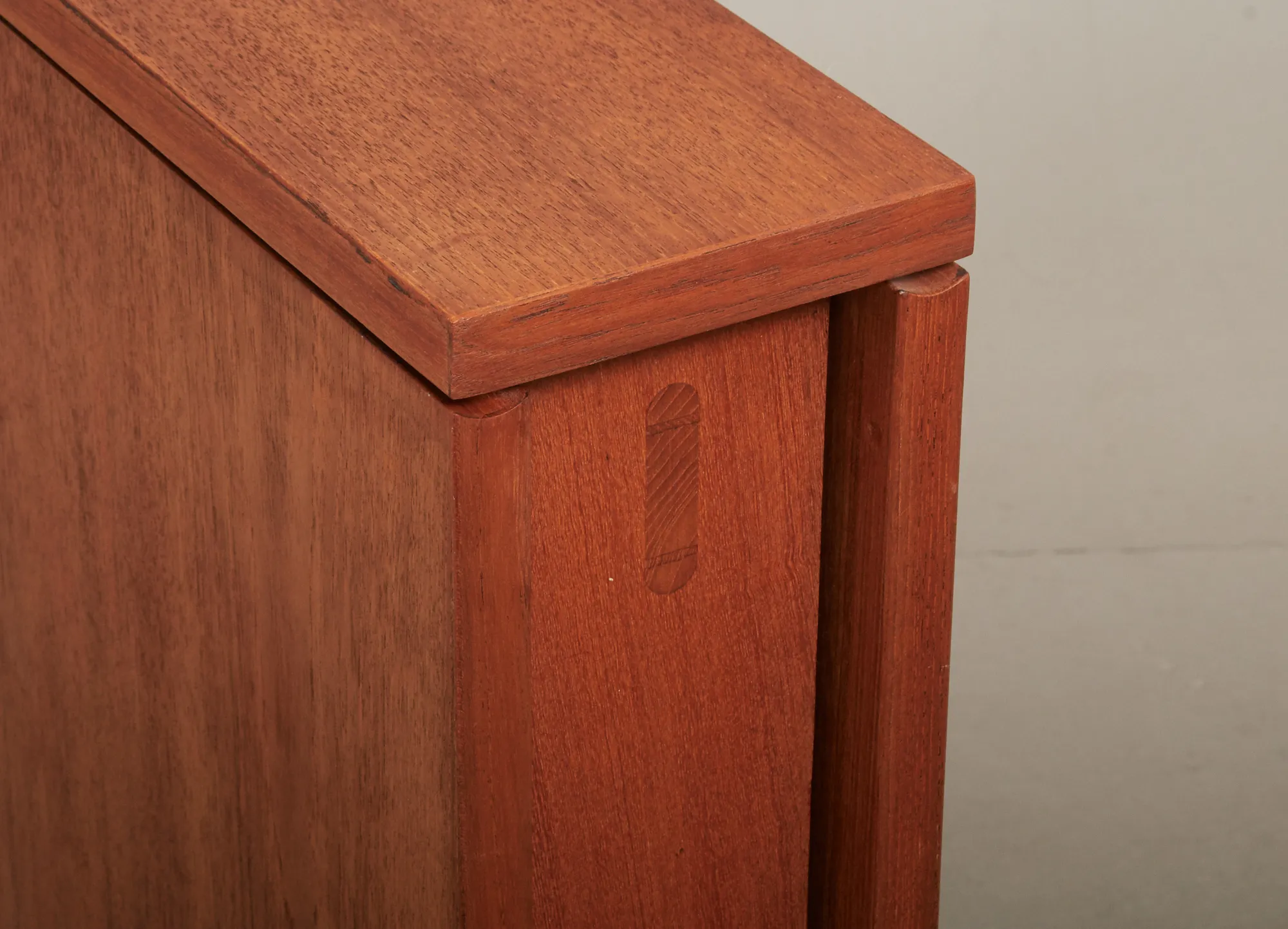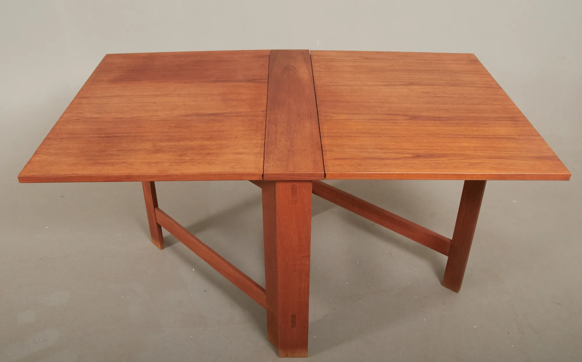 Teak, 90 x 15,5 cm, höjd 74 cm. 2 slag a´65 cm. Bruksslitage.