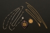 1 st halsband, 10-k guld, vikt 2,1 gram, 1 st halsband vitguld, vikt 5,2 gram, hänge, vikt0,7 gram, brosch, emalj, samt 18-k guld, vikt 4,1 gram