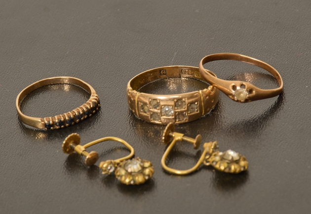 296. Smycken, 9, samt 14-k guld