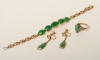 Armband, ring, samt örhängen med skruvar, med jadeit, längd armband 17 cm, strl ring 18, tot. vikt 15,4 gram, smärre slitage