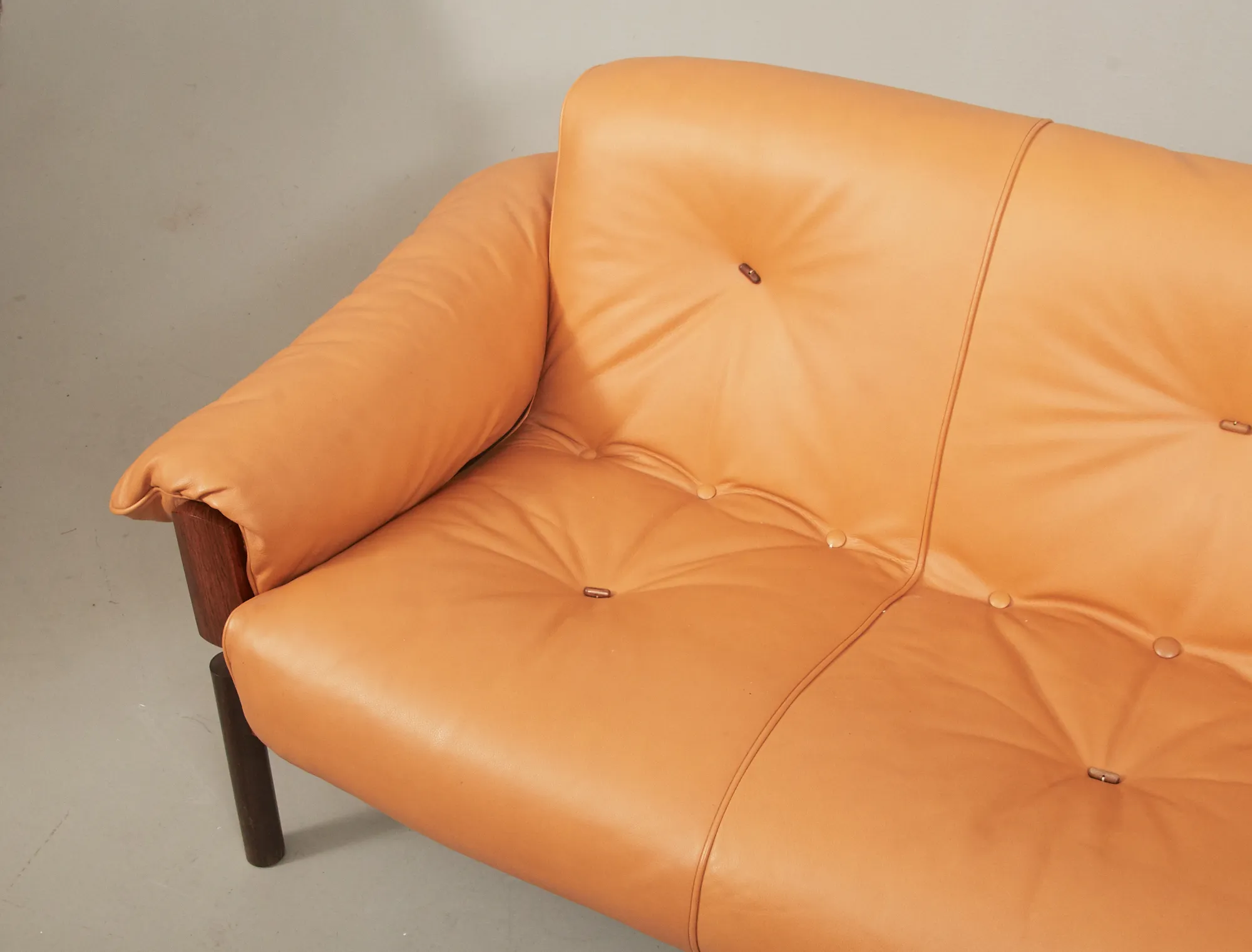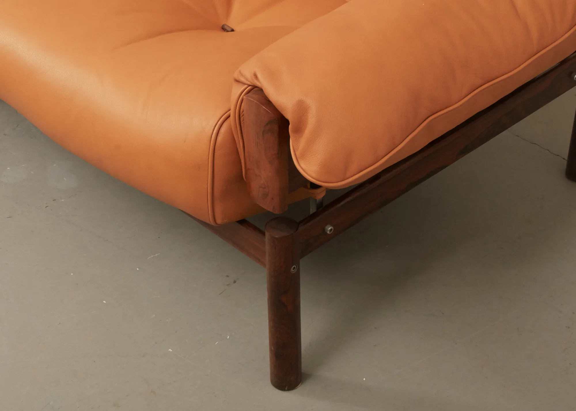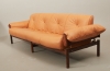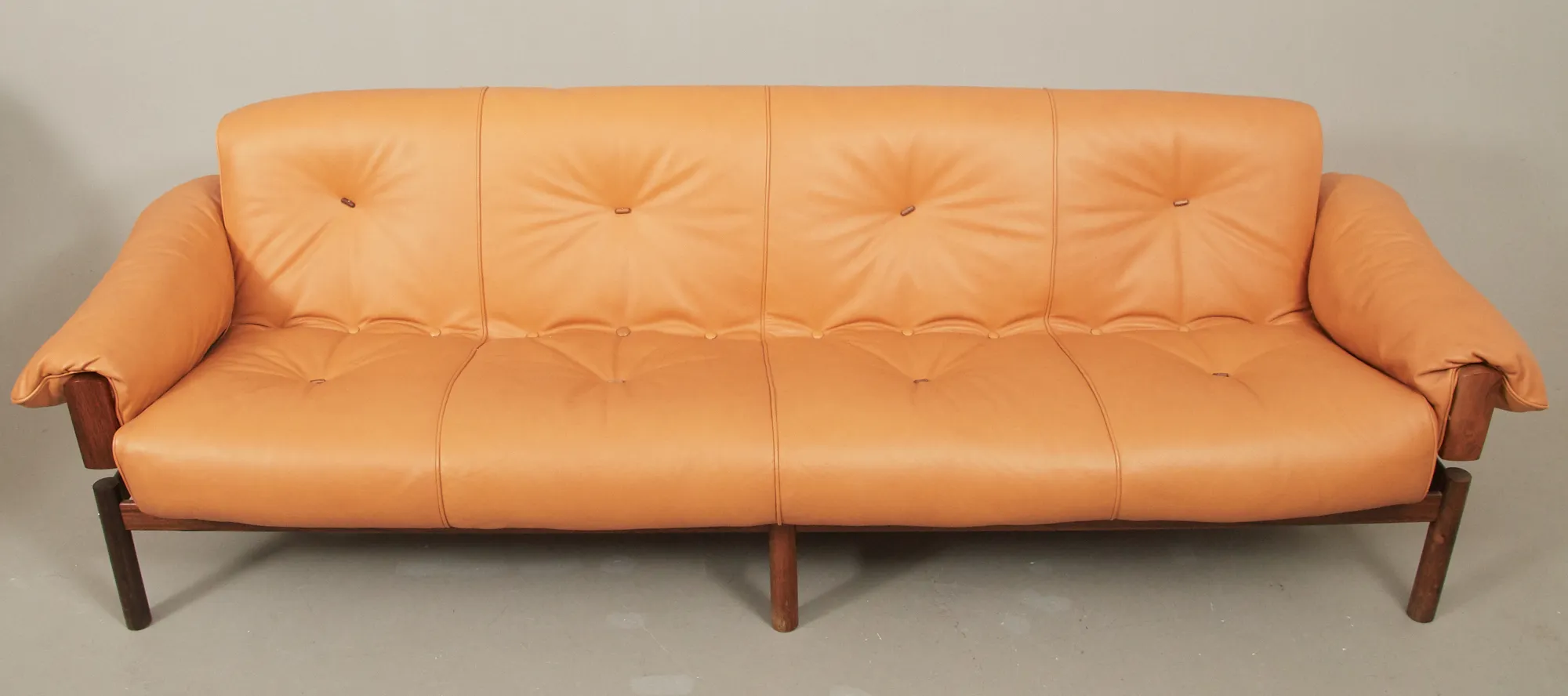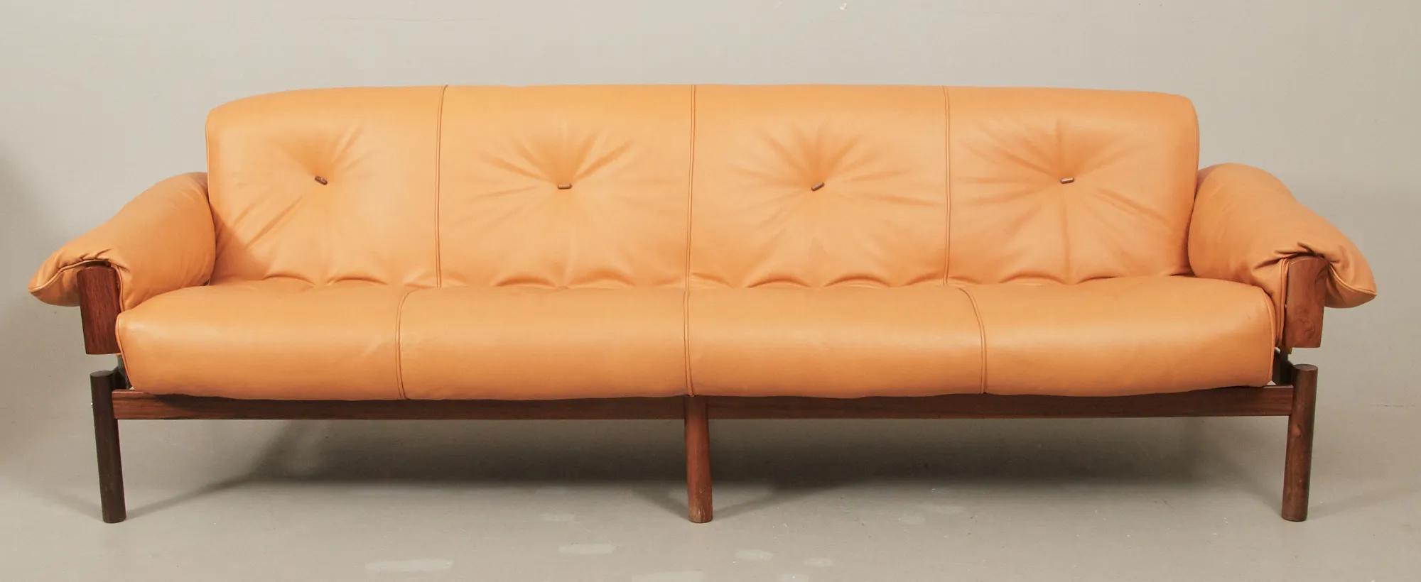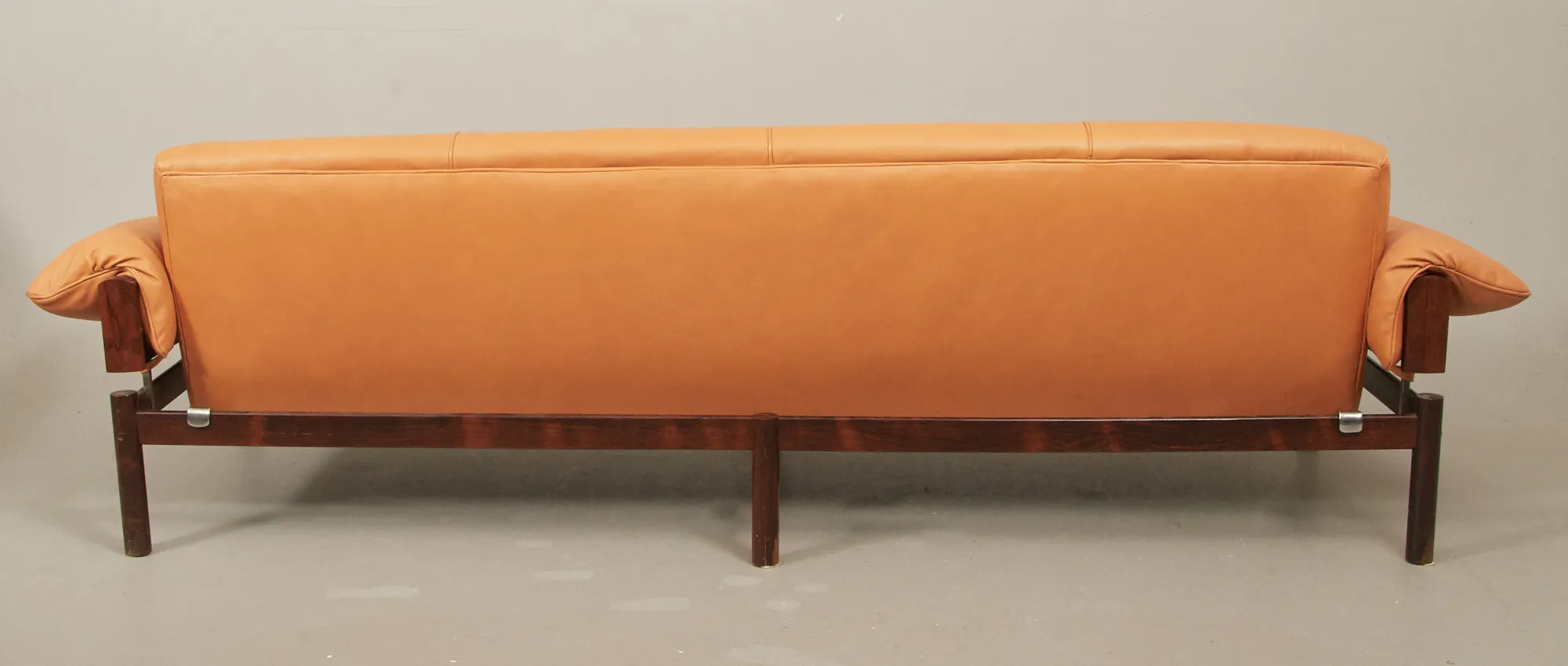 Omkring 1970, ljusbrun läderklädsel, stomme i jakaranda, längd 240 cm, smärre bruksslitage. CITES-intyg medföljer.