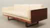 Danmark, 1960-tal, Jakaranda, lösa plymåer i rygg och sits, längd 204 cm, djup ca 80 cm, smärre bruksslitage, men fläckar på klädsel förekommer, källarlukt, CITES-intyg medföljer.