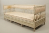 Omkring år 1800, skuren dekor, längd 202, djup 75, höjd ca 42/88, bruksslitage, mindre skador, färgbortfall