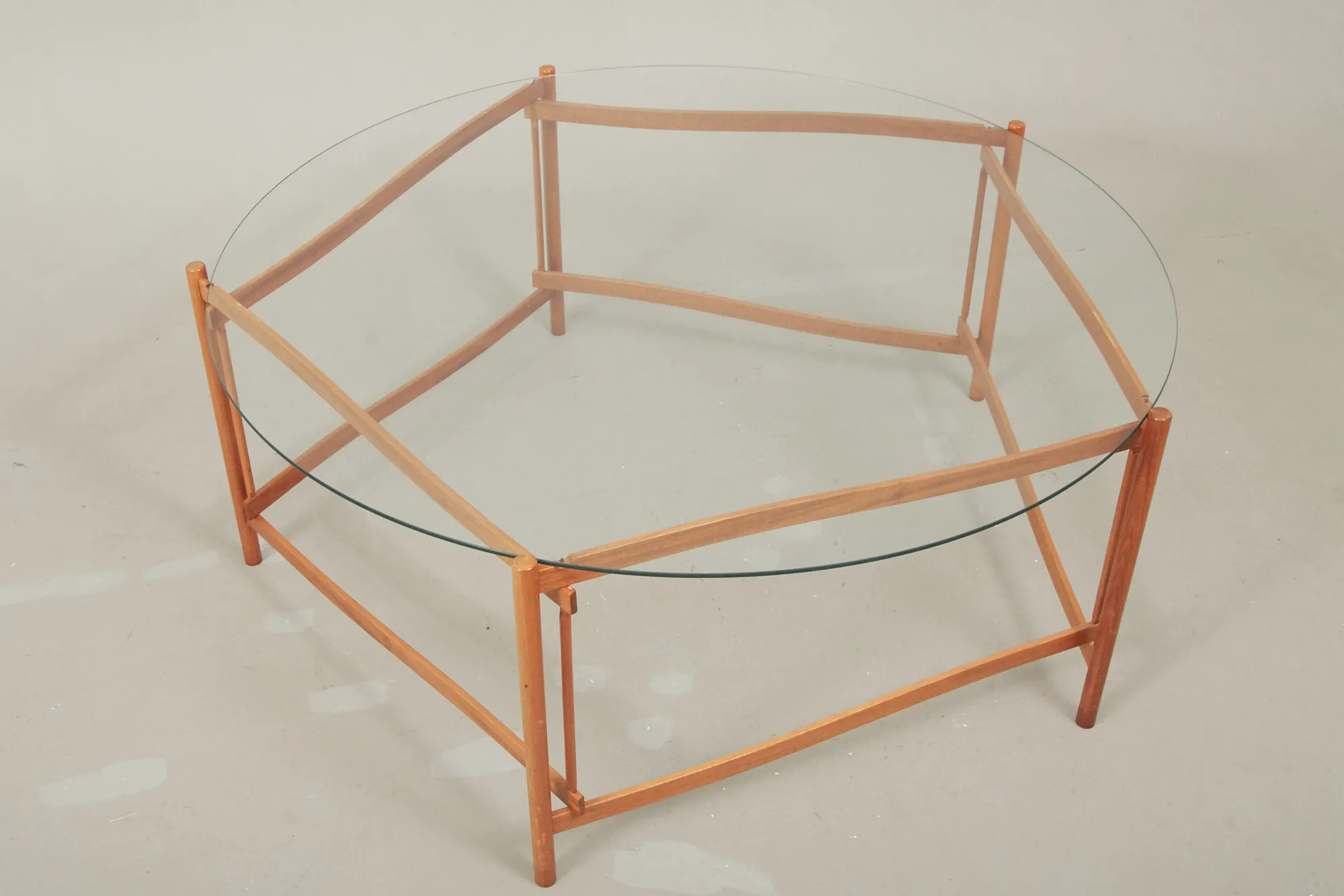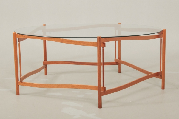 Karl Andersson & Söner, underrede i ek, skiva i glas diam ca 126 cm, höjd 54 cm, smärre bruksslitage.