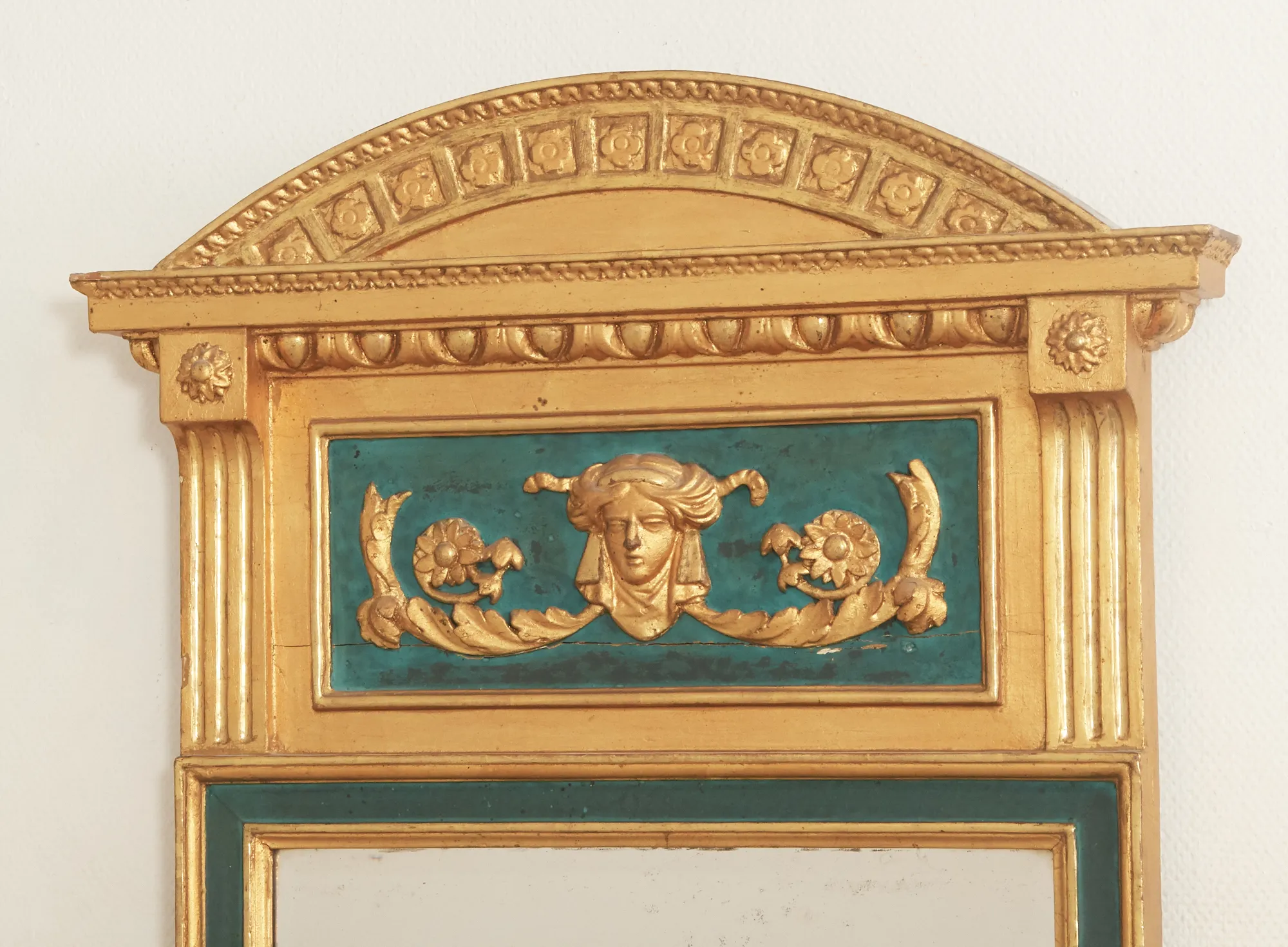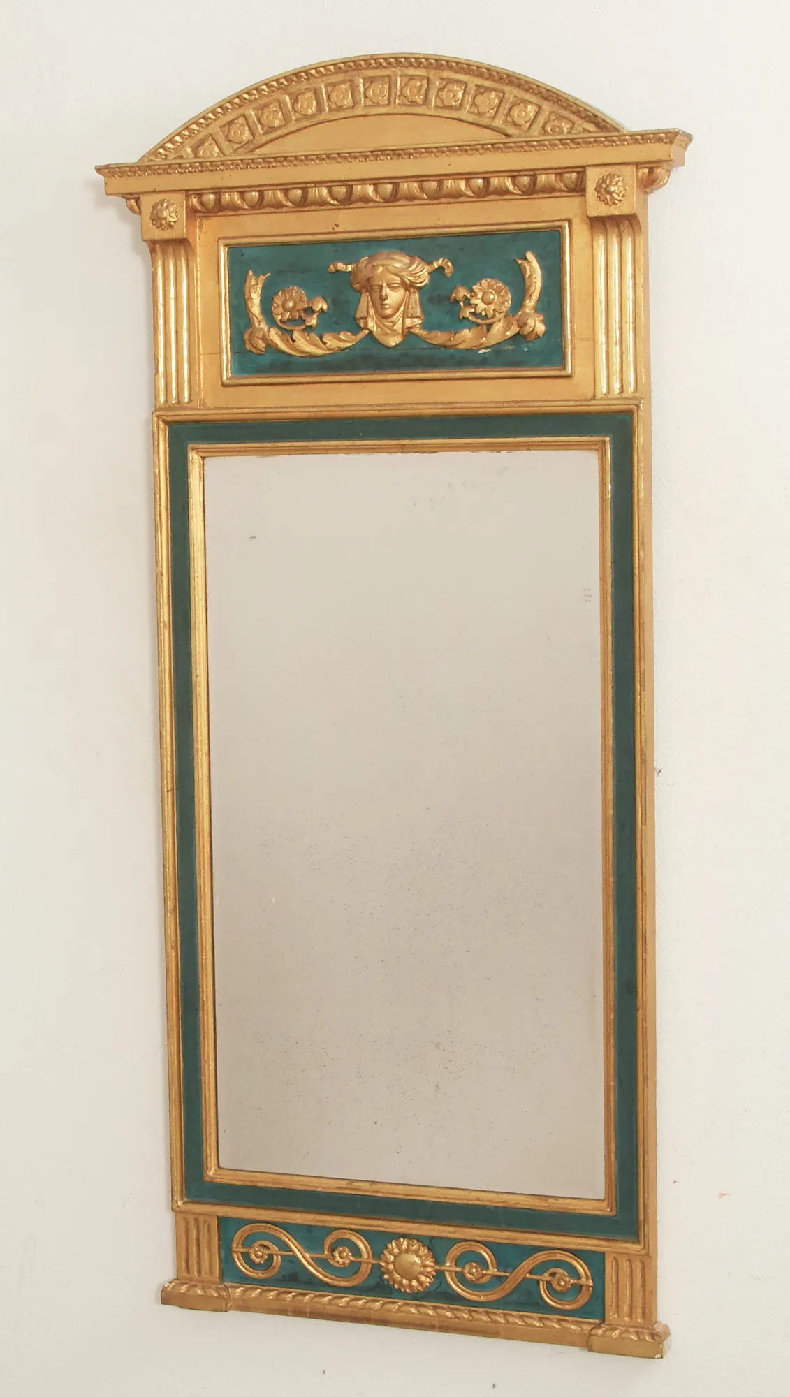Fasetterat spegelglas, senare renoveringar, 148 x 69 cm, åldersrelaterat bruksslitage, mindre skador förekommer.