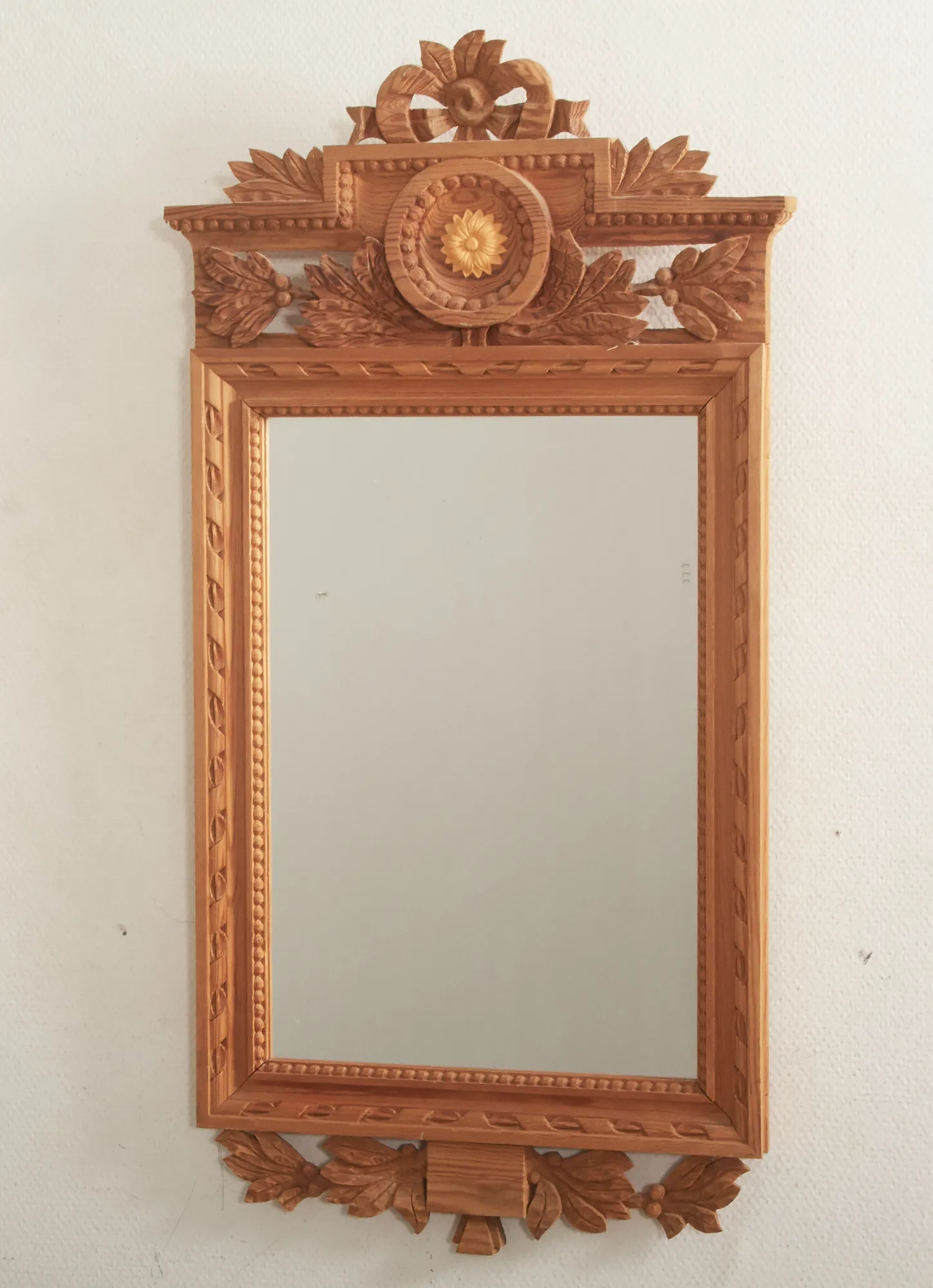 Furu, med snidad ram, 90 x 47 cm, smärre bruksslitage.