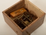 Fågelstämmstränare, 1900-talets början, mässing samt trä, 18 x 18, höjd 13 cm, defekt bälg, verket går hackigt