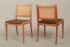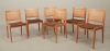 1960-tal, 6 st, ek, med ryggbricka i flätad rotting, textilklädd sits, bruksslitage/slitage, skador på klädsel förekommer, 2 stolar med senare lagning under sits.
