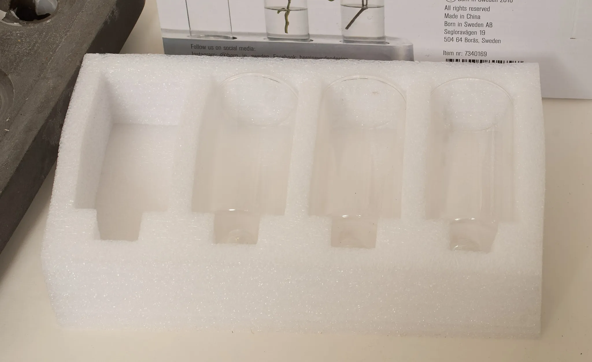 Plats för 16 ljushållare, aluminium, ca 4 x 29,5 x 29,5 cm samt 3 st vaser i glas.