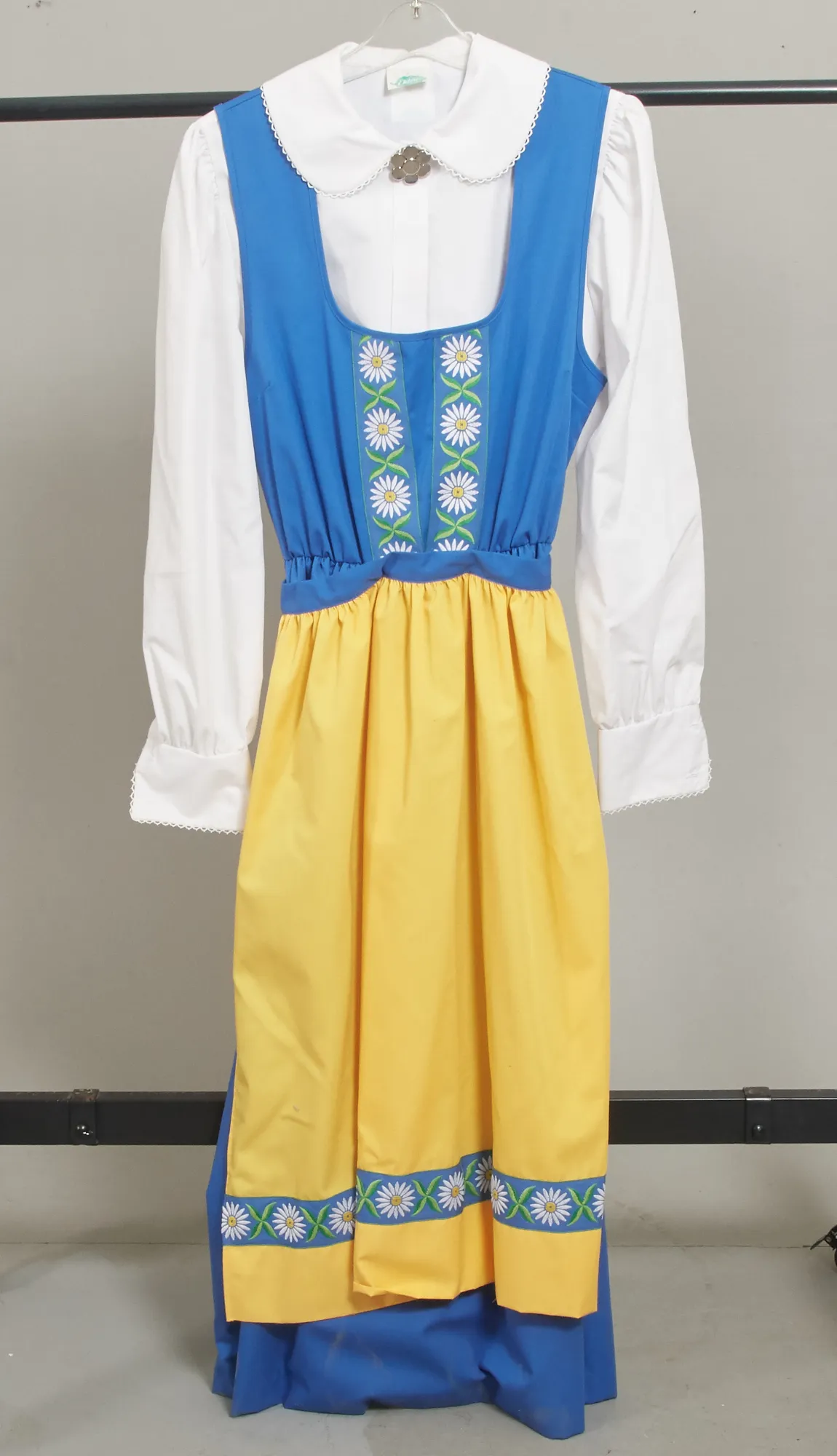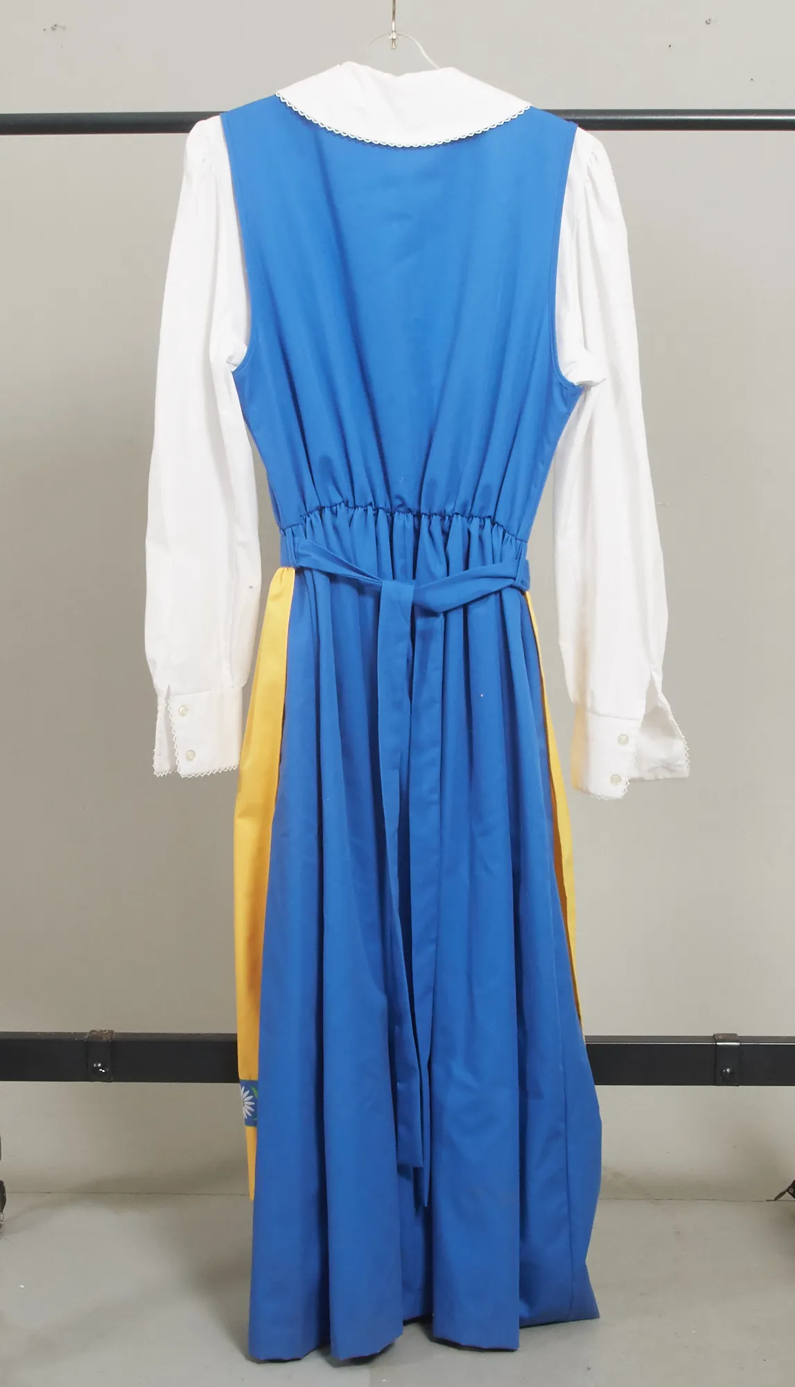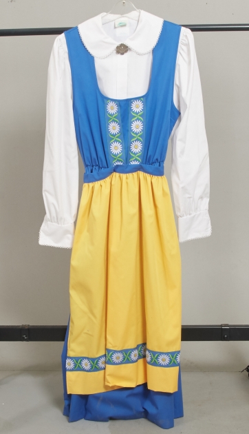 Storlek S. 3 delar, klänning, skjorta och förkläde. Smärre bruksslitage