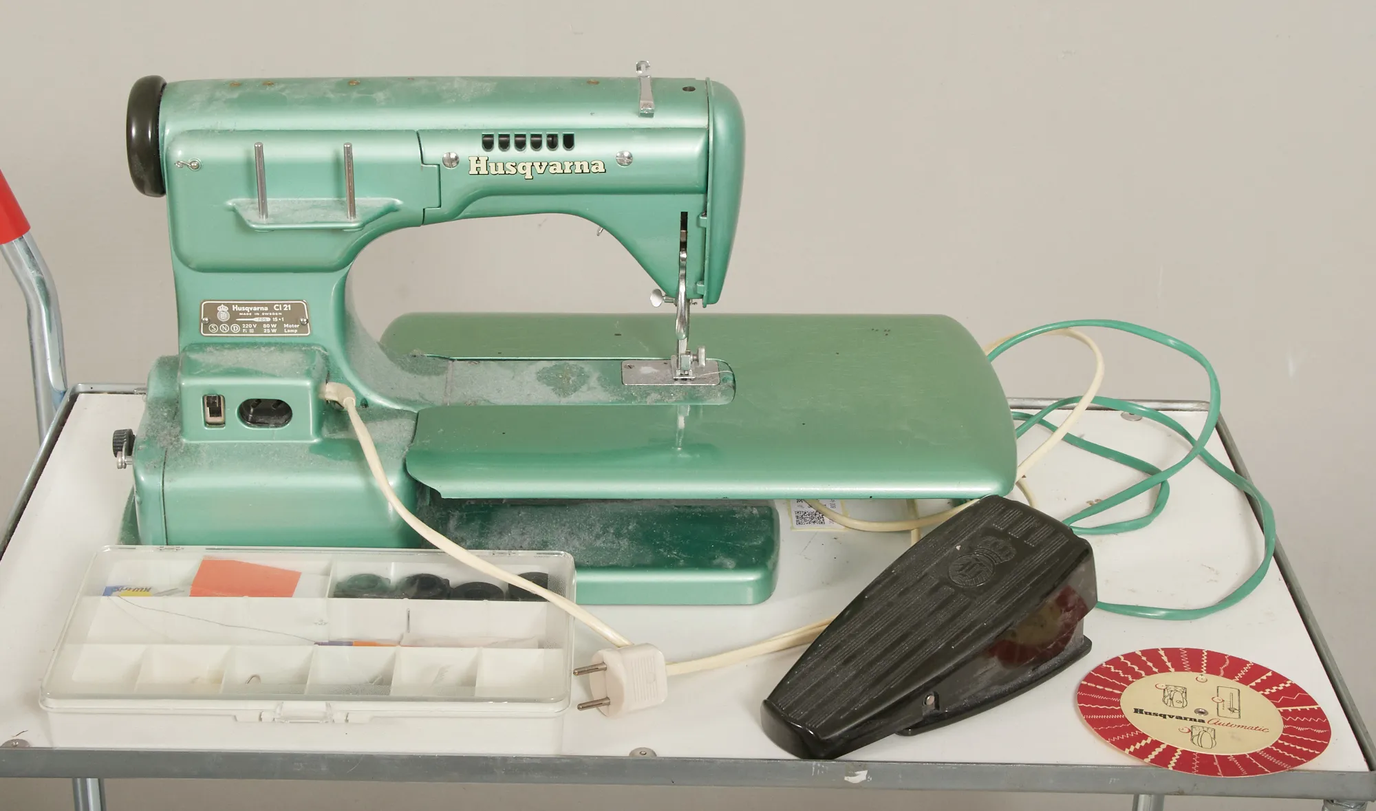 Fungerar vid enklare test, trampa m.m. medföljer. Ojordad elkontakt.