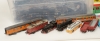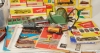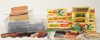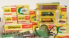 Mycket i originalkartonger, 3 lok, 19 vagnar, skenor, pultar, trafo m.m. samt japansk trådbuss. Innehål enligt spec. (bild)