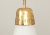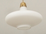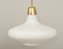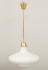 1950-tal, mässing, med kupa i opakt glas, höjd inkl upphängning 74 cm, diam 40 cm. Mässing något anlupen. Saknar elkabel.