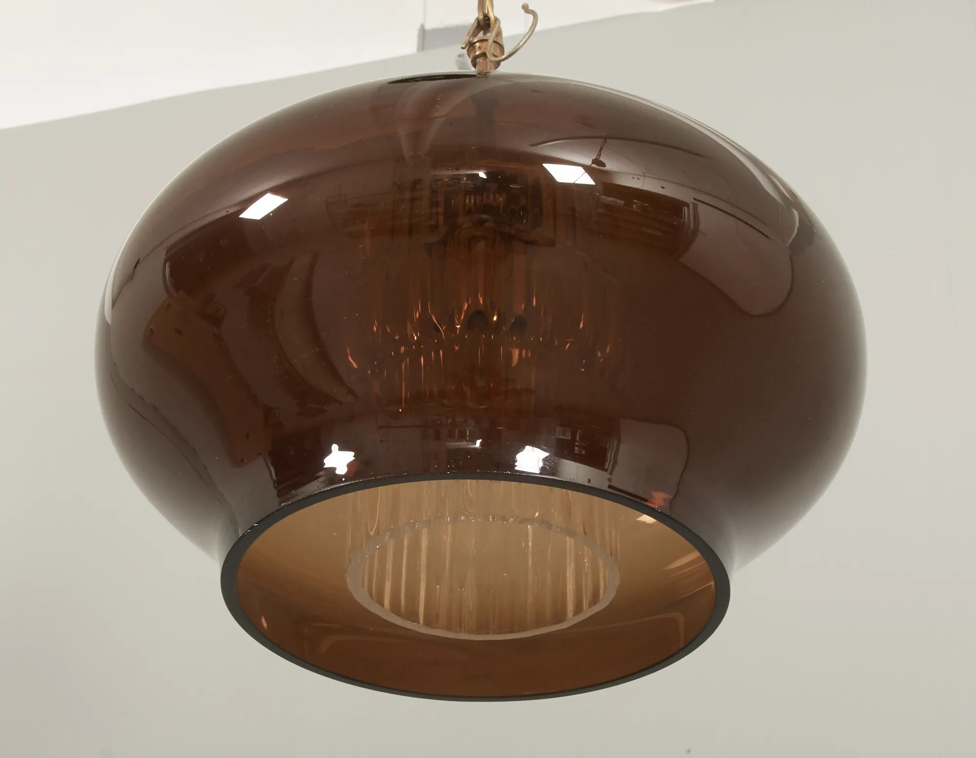 Glas, samt mässing, höjd exkl kedja 35 cm, smärre bruksslitage.