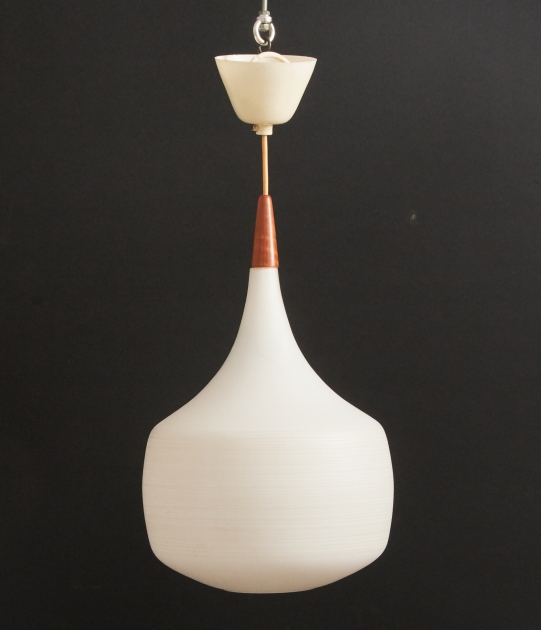 Teak och glas. Höjd 40 cm. Ej funktionstestad.