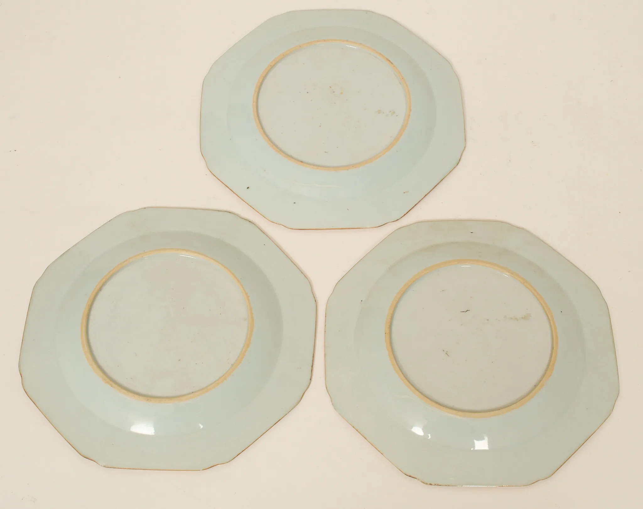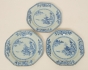 Oktagonala tallrikar med dekor i underglasyrblått, diam. 23 cm, smärre slitage, mindre kantnagg, tillverkningsdefekt.