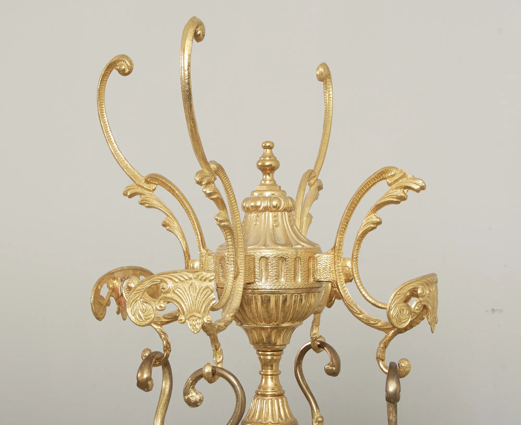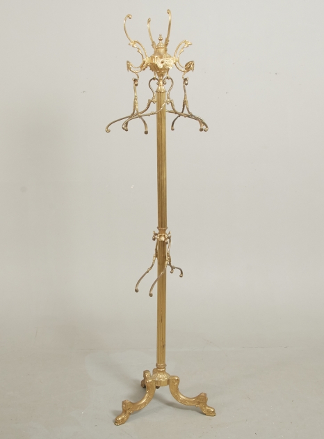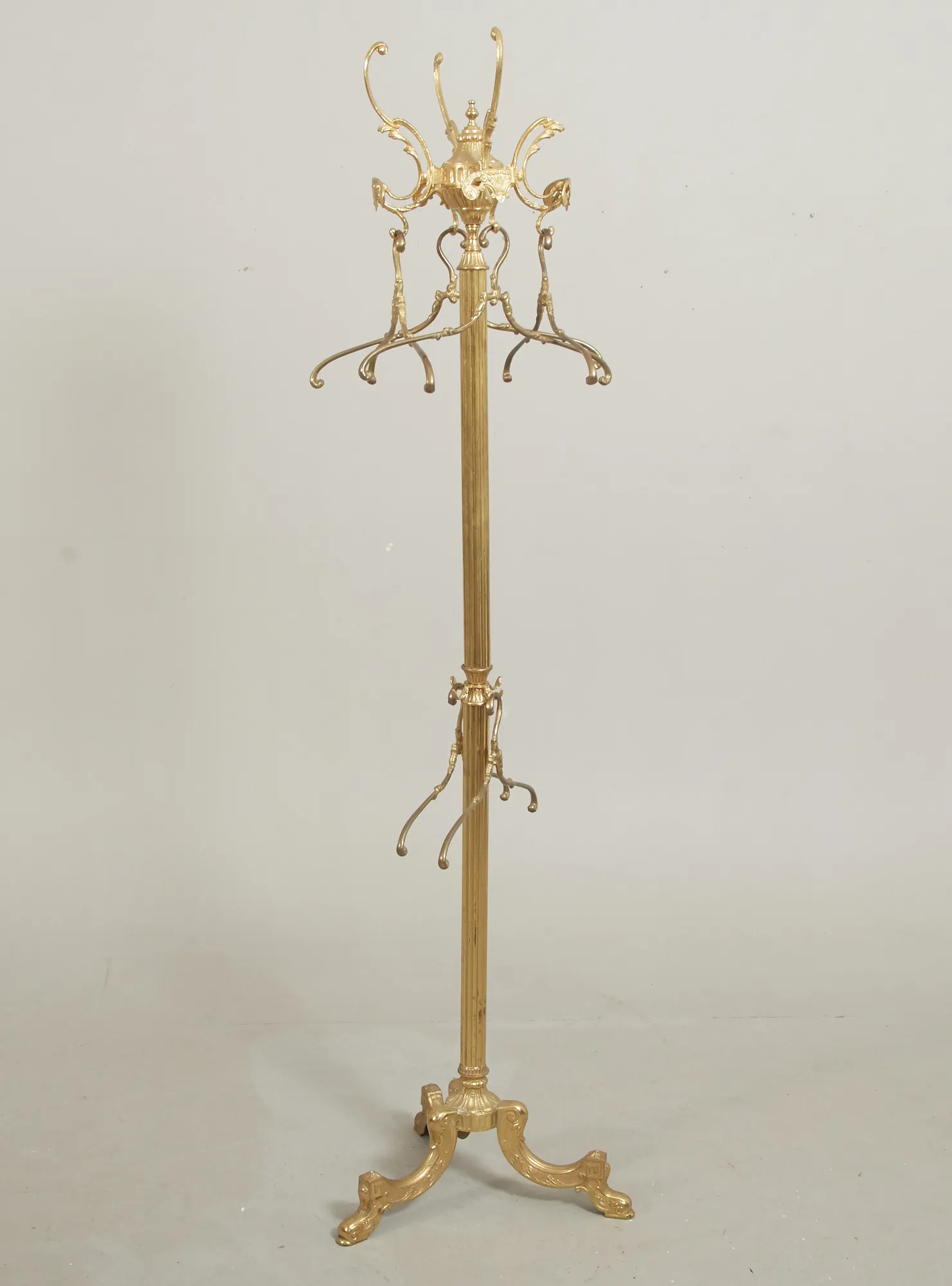 Mässing, höjd ca 175 cm, smärre bruksslitage, men en krok defekt, galgar medföljer.