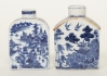 2 st, dekor i underglasyrblått, flodlandskap med pagoder, höjd 11 - 12 cm, något mindre nagg förekommer, annars smärre slitage.