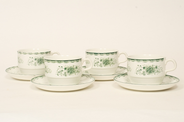 4 koppar med fat, smärre bruksslitage.