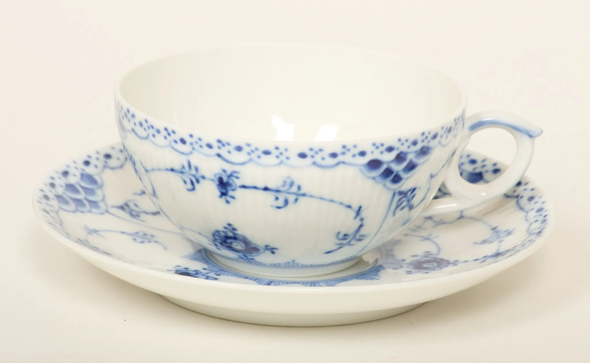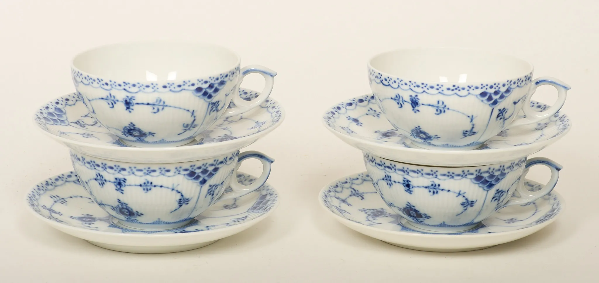 264. Tekoppar med fat, "Musselmalet", Royal Copenhagen