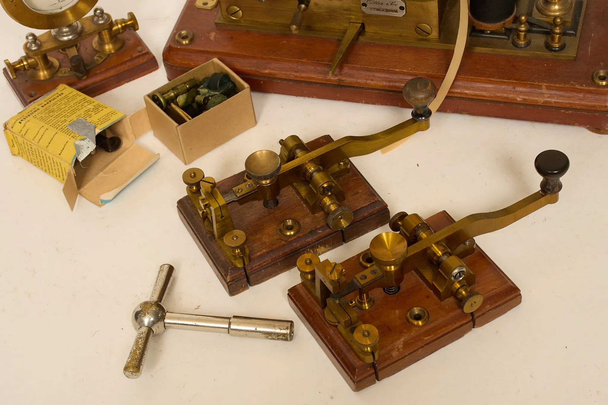 Oller & Co Stockholm. Telegrafnyckel, L.M Ericsson. Telegrafnyckel Lindholm & Wikström. Golvaometer L.M Ericsson mm