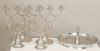 Skål med kvinnofigur CG Hallberg 1936, parljusstakar för 2ljus Markströms Tenn, par kandelabrar Celestin Andersson en med småbucklig fot, annars bra skick, höjd 17.5-28.5 cm, bredd 17.5-32.5 cm, diameter 30 cm.