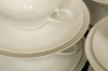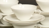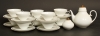 31 delar, 10 koppar med fat samt 9 assietter, kanna samt sockerskål. Vitt porslin med reliefdekor, smärre slitage.