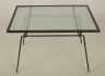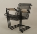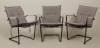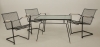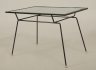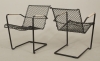 3 stolar "P 40", stomme av lackerad metall med sitsar av plastad metalltråd. Bord "P 50", trådglasskiva, 90 x 60, höjd ca 60 cm. Bruks- och åldersrelaterat slitage. Dynor medföljer, ej orginal.