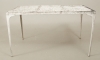 Bord, samt 6 st stolar, lackerad aluminium, 90 x 132 cm, höjd 73 cm, bruksslitage, smuts, färgbortfall