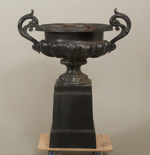 Bemålat gjutjärn, totalhöjd 108 cm, höjd urna 68 cm, smärre bruksslitage. OBS! Tung!