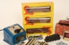 Märklin, lok CE800 i originalkartong, lok DB800, i originalkartong, lok RSM800, i originalkartong, lok TM80D, skenor, stolpar, trafo, pult, 3 st Limavagnar i originalkartong.