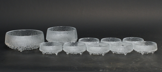 1 + 1+ 8 skålar, högsta höjd 9 cm, smärre bruksslitage.